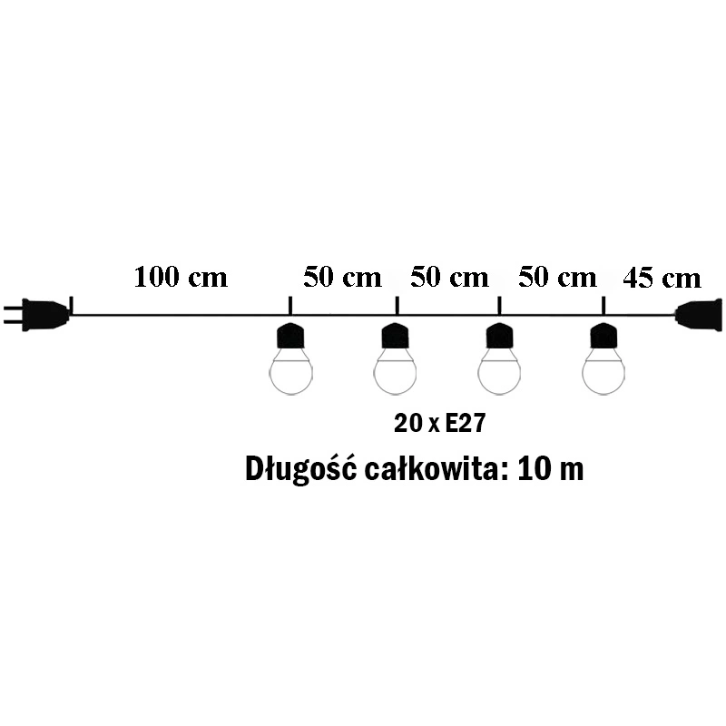 • Vzdálenost od napájecího zdroje k první žárovce je 100 cm