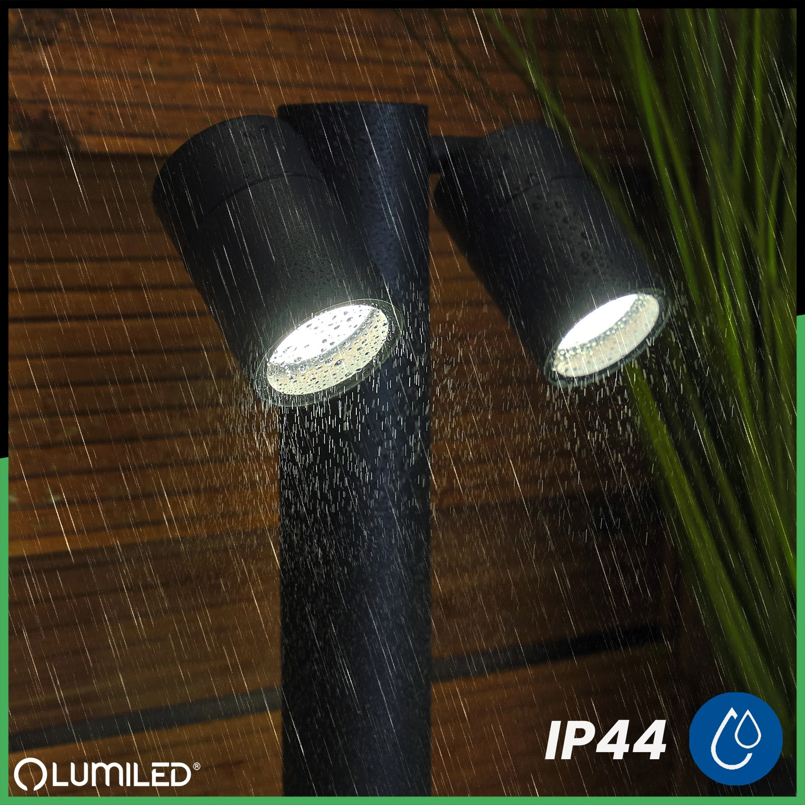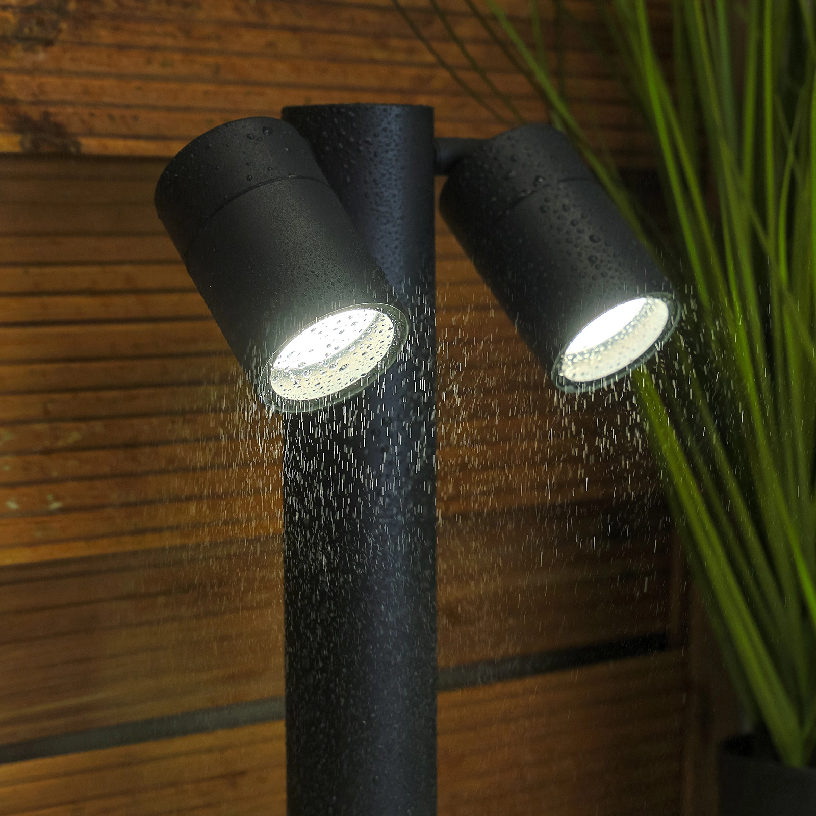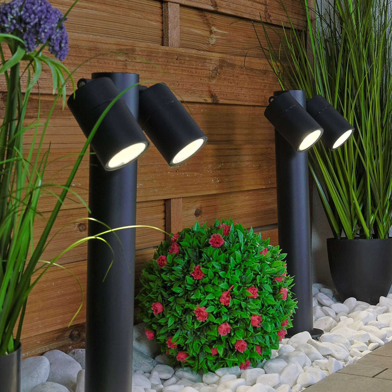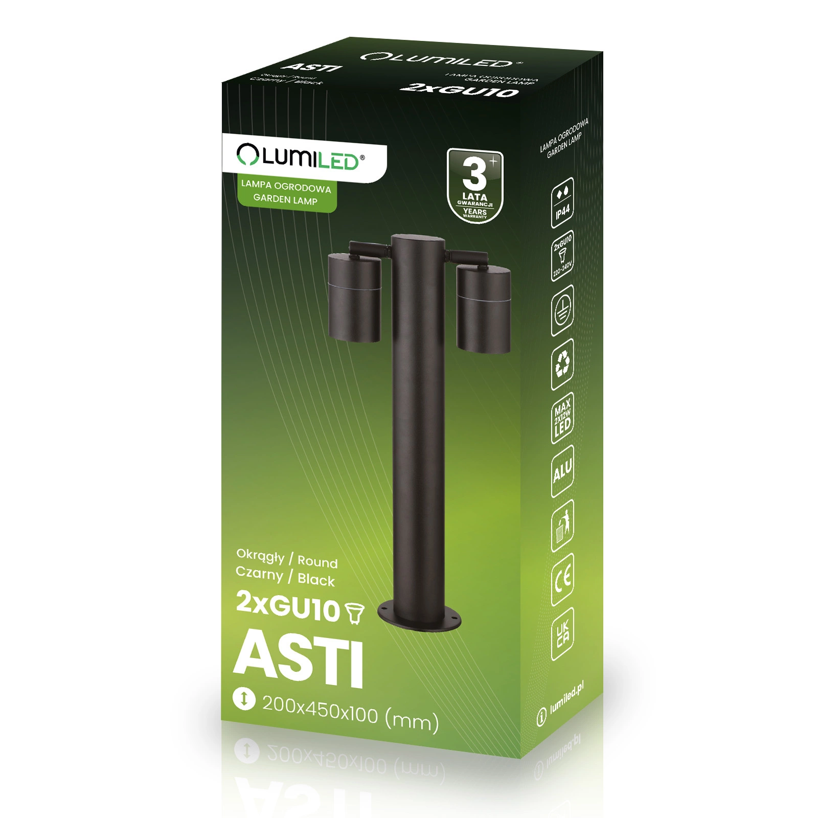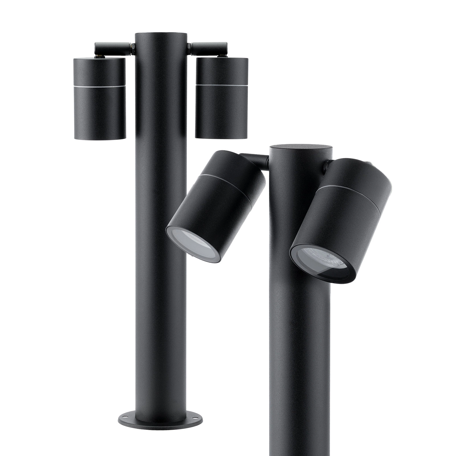 Stojací lampa 45 cm ze série Asti je nejnovější venkovní zahradní svítidlo vyrobené z nejkvalitnější oceli, které zajišťuje odolnost výrobku na velmi vysoké úrovni. Prezentovaná zahradní lampa se dvěma bodovými stínidly je nejlepší volbou pro osvětlení zahradních cest, příjezdových cest a chodníků. Místa, kde bude instalován, získají díky svému modernímu designu jedinečné kouzlo a zajímavější vzhled. Použité materiály zaručují krytí IP44 , které poskytuje svítidlu ochranu proti stříkající vodě a předmětům silnějším než 1 mm. Vnější svítidlo je vybaveno dvojitou paticí s univerzálním závitem GU10 , kde doporučujeme použít úsporné LED žárovky.