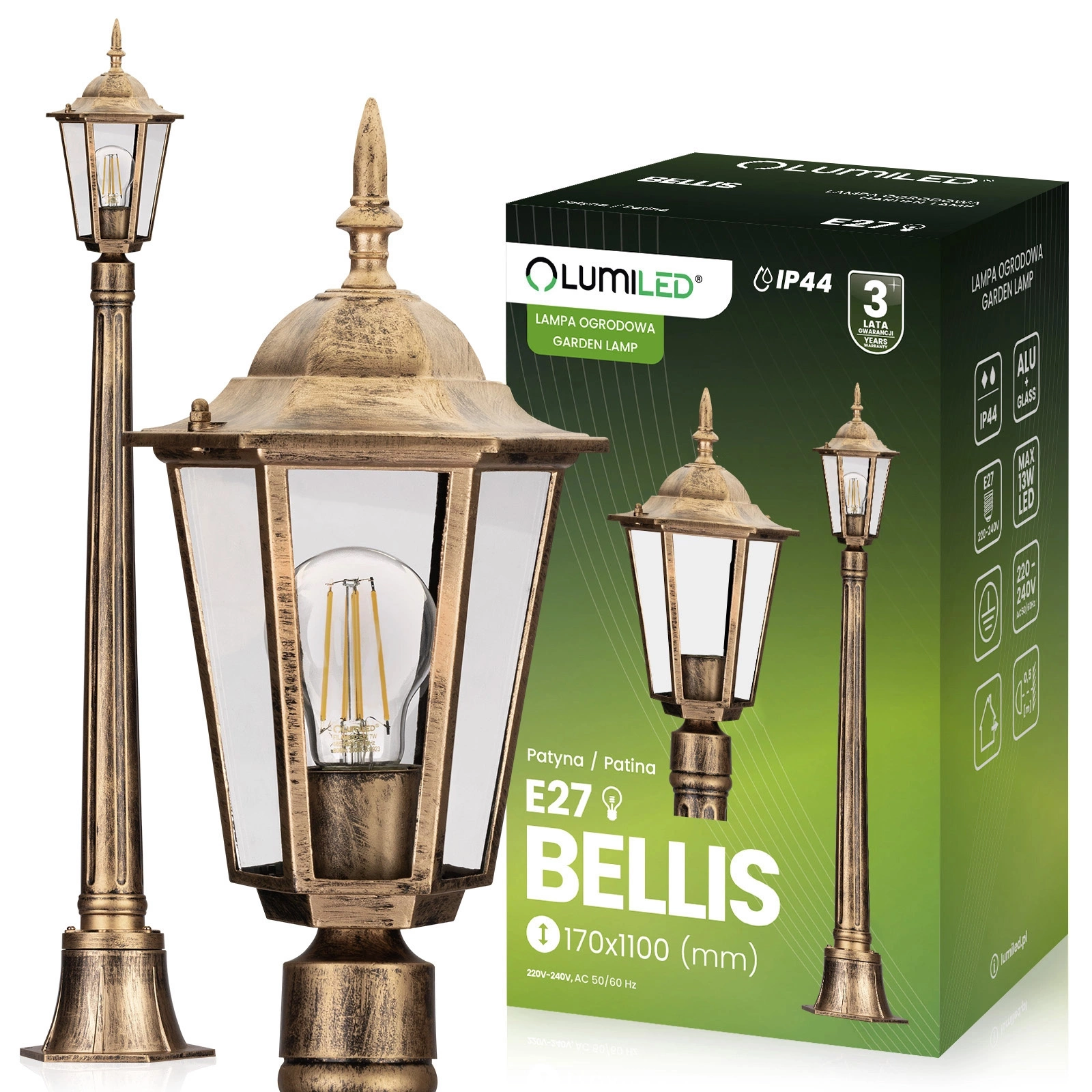 Zahradní lampa řady Bellis značky Lumiled je elegantním doplňkem každé zahrady. Barva patiny jí dodává klasický šarm a může se krásně sladit s okolím, zejména s přírodními prvky, jako je vegetace nebo kámen. Tato lampa, která kombinuje tradiční design s moderními materiály, může být nejen praktickým zdrojem světla, ale také dekorativním prvkem, který zdůrazní charakter venkovního prostoru.