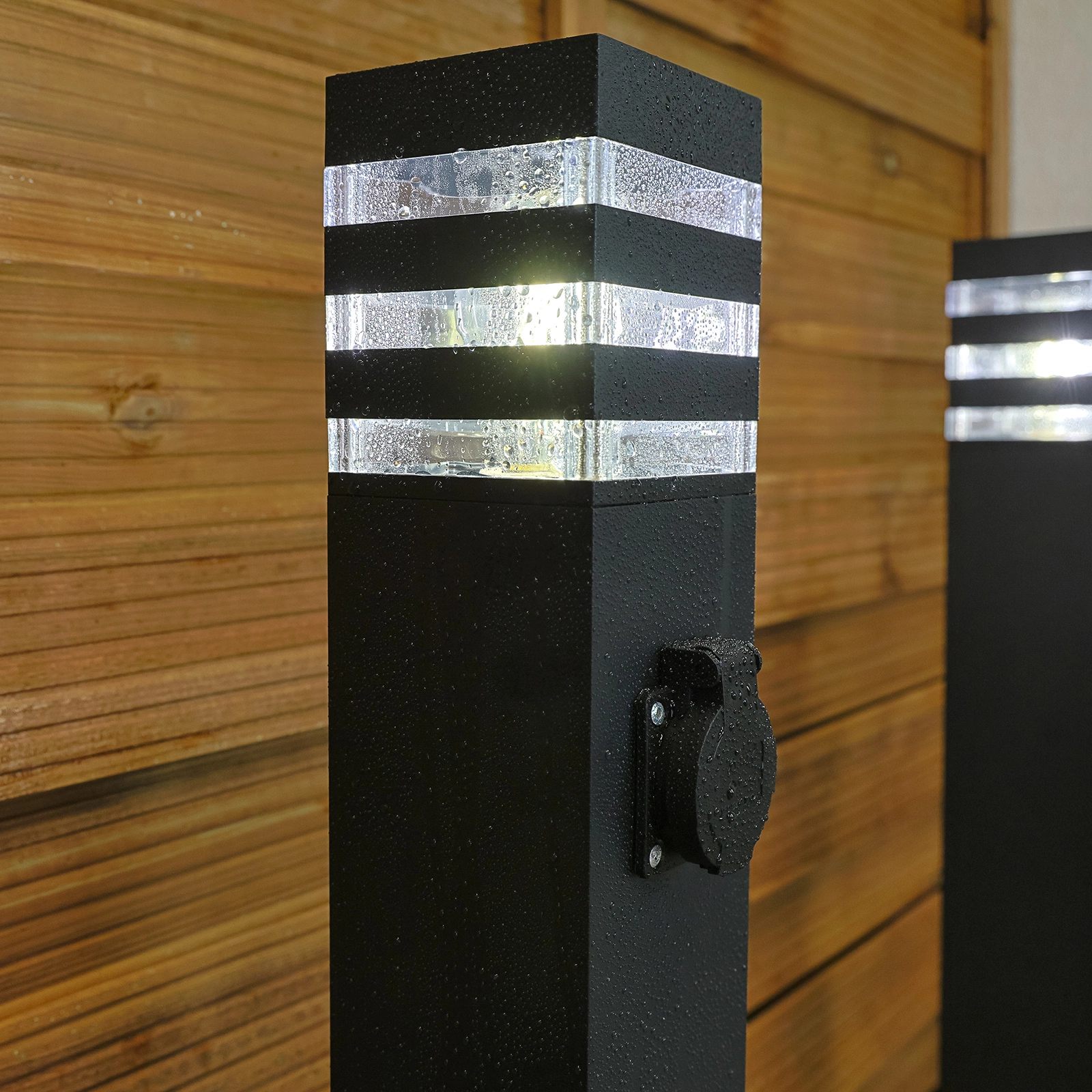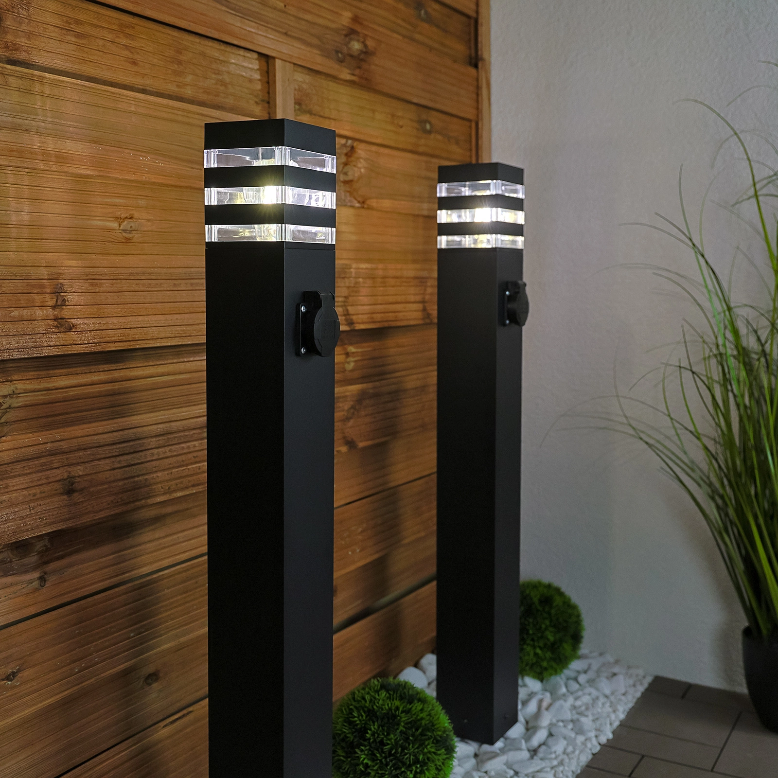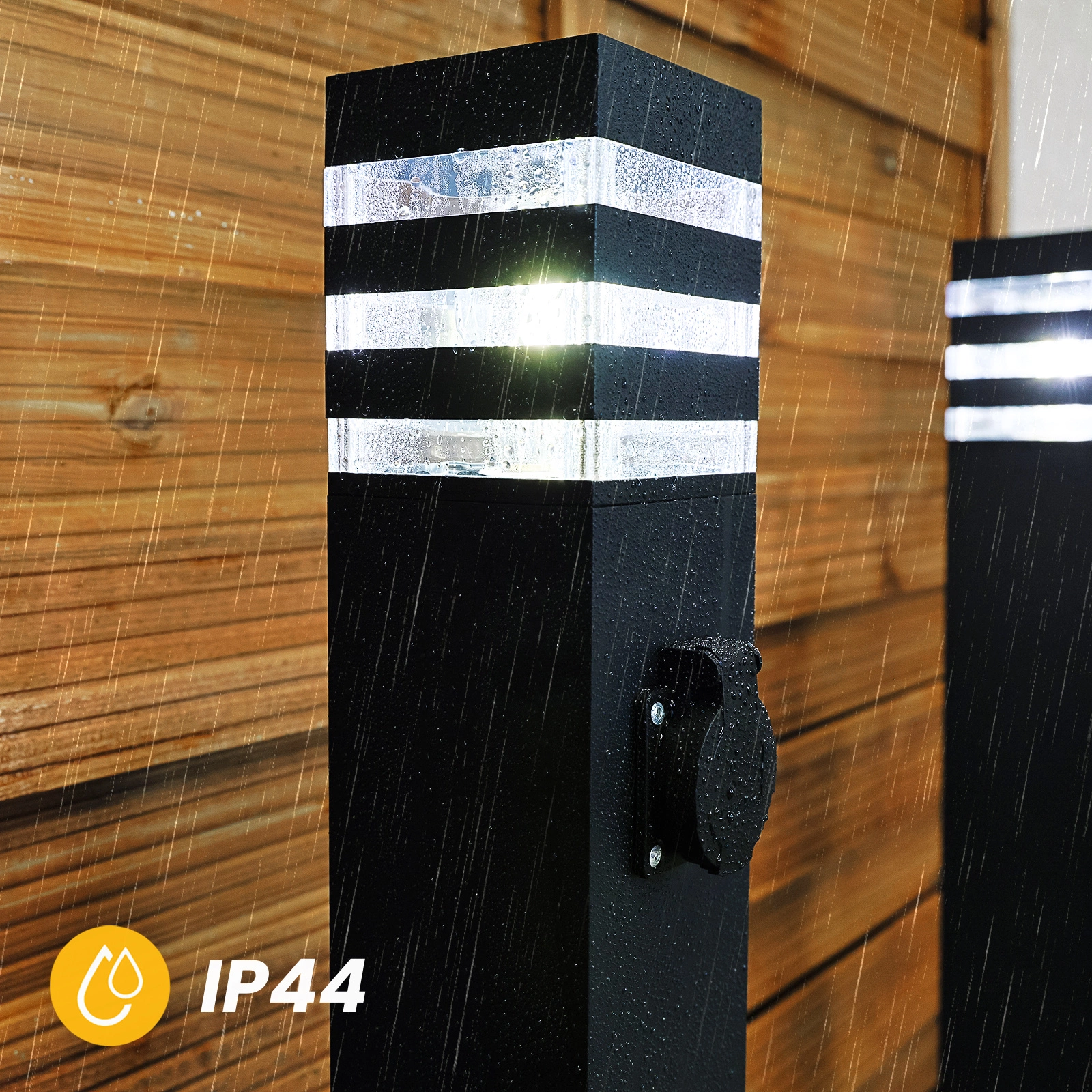 Lampa je vybavena praktickou zásuvkou SCHUKO, která je schopna obsluhovat zařízení s maximálním zatížením až 3680W. Díky této zásuvce můžete snadno připojit různé spotřebiče pro každodenní použití, jako jsou elektrické sekačky, autovysavače a další nástroje potřebné pro údržbu zahrady nebo čištění domu. Je to ideální řešení, které zvyšuje funkčnost jakéhokoli venkovního prostoru a umožňuje efektivní a pohodlné používání elektrických nástrojů na čerstvém vzduchu. Zásuvka SCHUKO v zahradním sloupku poskytuje pohodlí a bezpečnost, které umožňuje plně využít zahradní prostor.