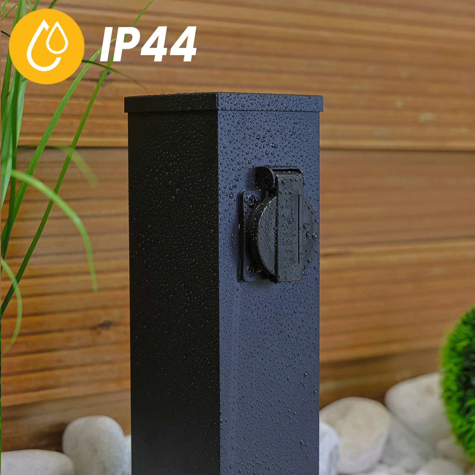 Díky vestavěným zásuvkám bude práce s elektrickým nářadím na zahradě a kolem domu mnohem jednodušší a příjemnější bez nutnosti rozmotávat další prodlužovací šňůry. Sloup byl uzpůsoben pro práci v nepříznivých povětrnostních podmínkách. Bude fungovat bez ohledu na počasí a roční období. Vysoký stupeň krytí IP44 poskytuje ochranu proti vnikání prachu a ochranu proti vodě z jakéhokoli směru.