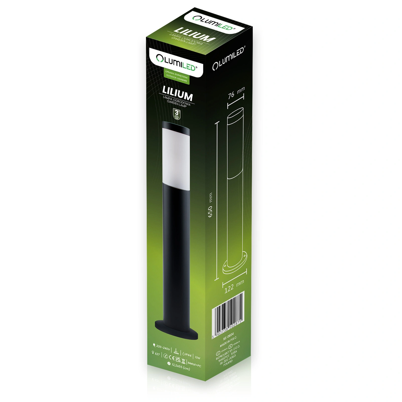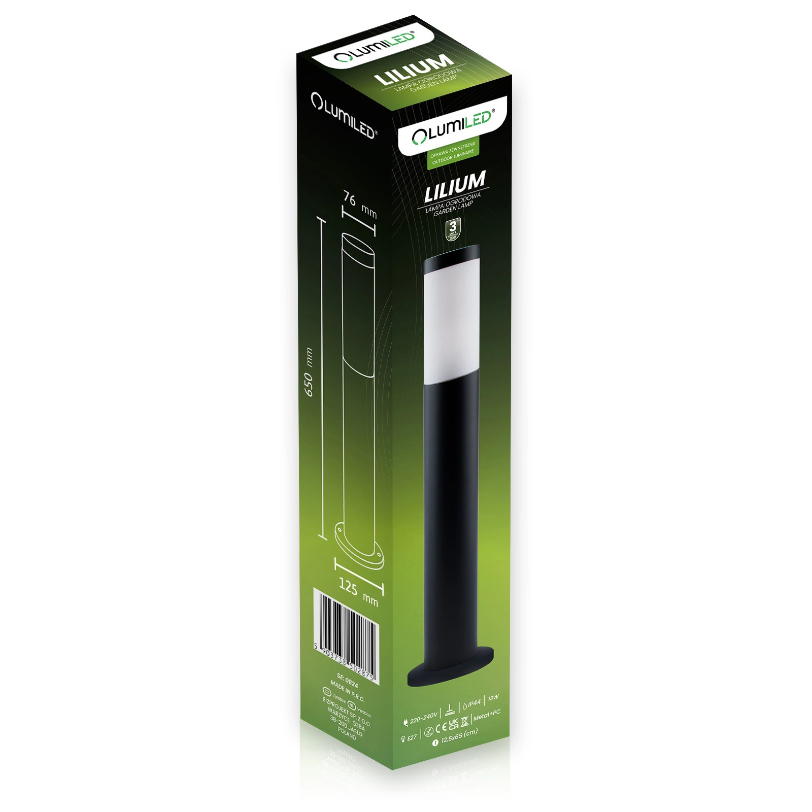 Zahradní lampa, venkovní sloupek o výšce 65 cm v černé barvě ze série LILIUM značky LUMILED. Lampa je vyrobena z vysoce kvalitní nerezové oceli a plastu. Použití nerezové oceli při výrobě lampy zajišťuje, že je odolná, snadno se čistí a zároveň je atraktivní na pohled. Lampa byla navržena s ohledem na své uživatele a je vybavena oblíbenou paticí E27, která umožňuje zašroubování libovolné žárovky s tímto závitem, pokud její výkon nepřekročí 12 W v případě LED žárovky.