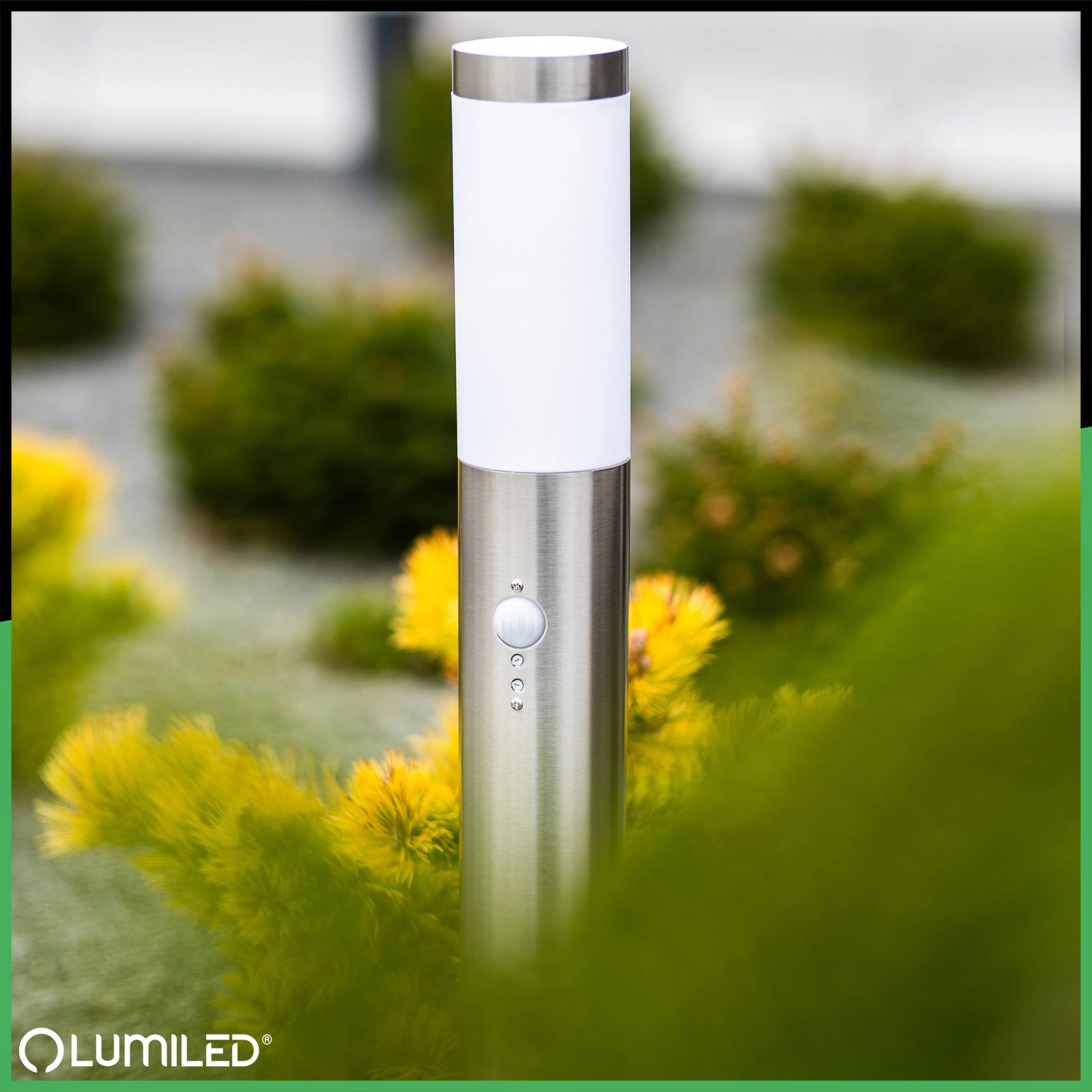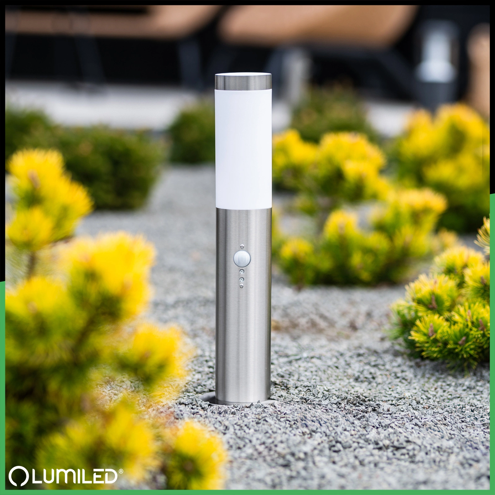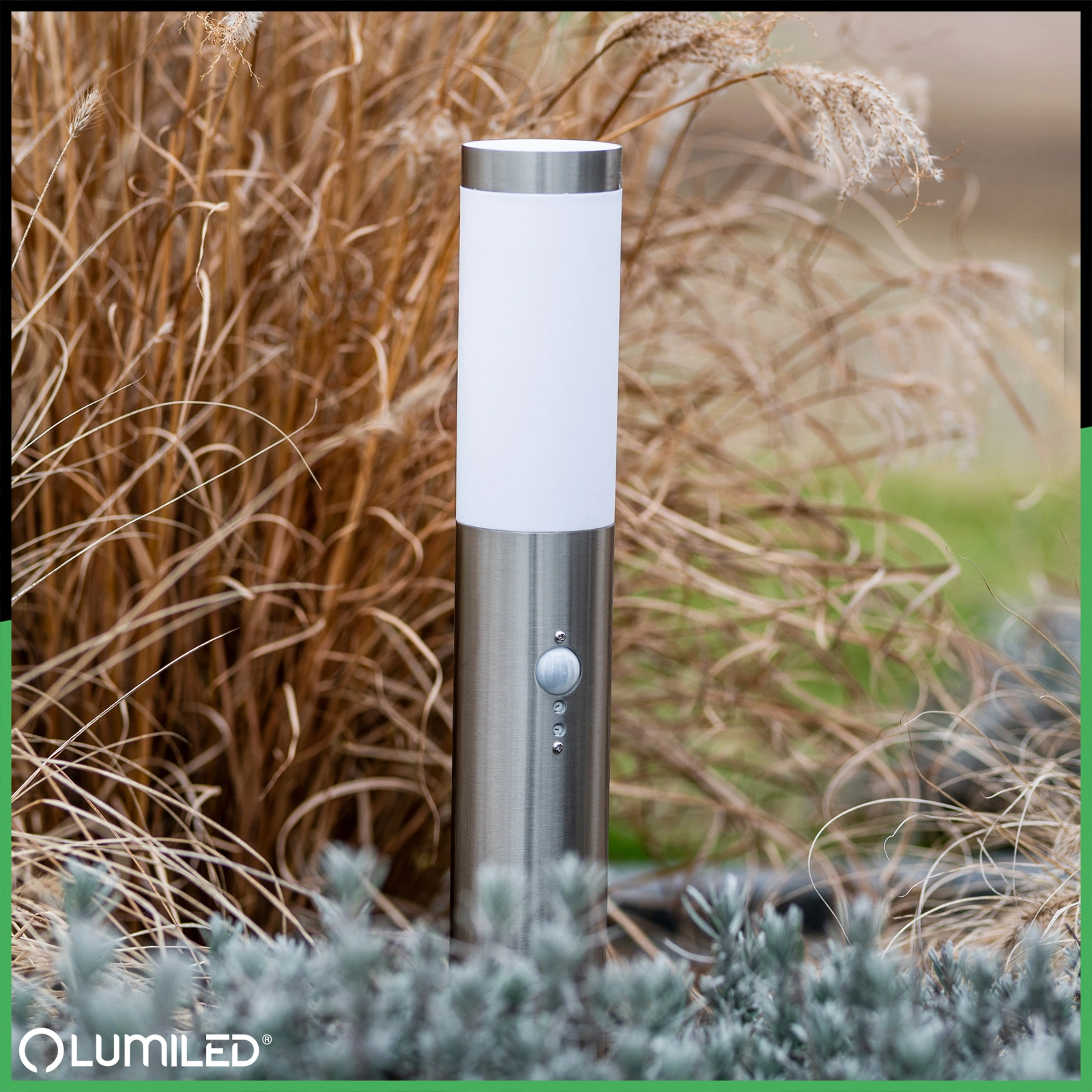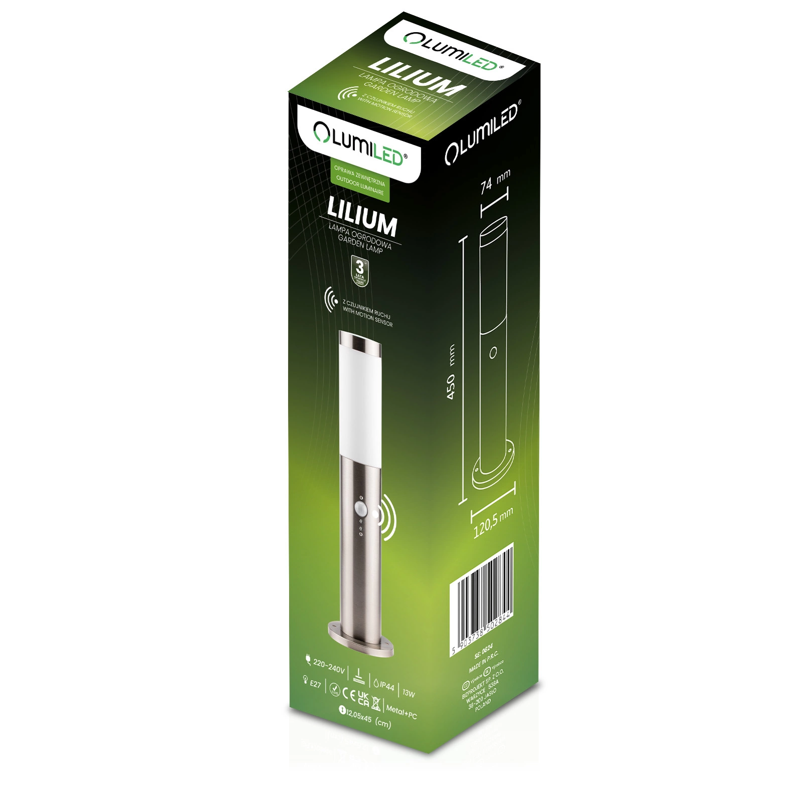 Zahradní lampa, venkovní sloupek o výšce 45 cm v barvě inox ze série LILIUM značky LUMILED. Lampa je vyrobena z vysoce kvalitní nerezové oceli a plastu. Použití nerezové oceli při výrobě lampy zajišťuje, že je odolná, snadno se čistí a zároveň je atraktivní na pohled. Lampa byla navržena s ohledem na své uživatele, a proto byla vybavena oblíbenou paticí E27 – která umožňuje zašroubování libovolné žárovky s tímto závitem, pokud její výkon nepřekračuje 12 W v případě LED žárovky.
