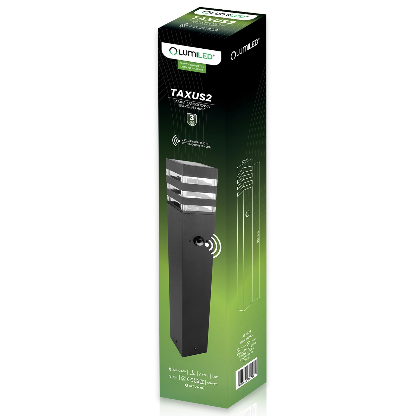 Venkovní zahradní lampa E27, LED snímač pohybu sloupek 60cm TAXUS 2 LUMILED