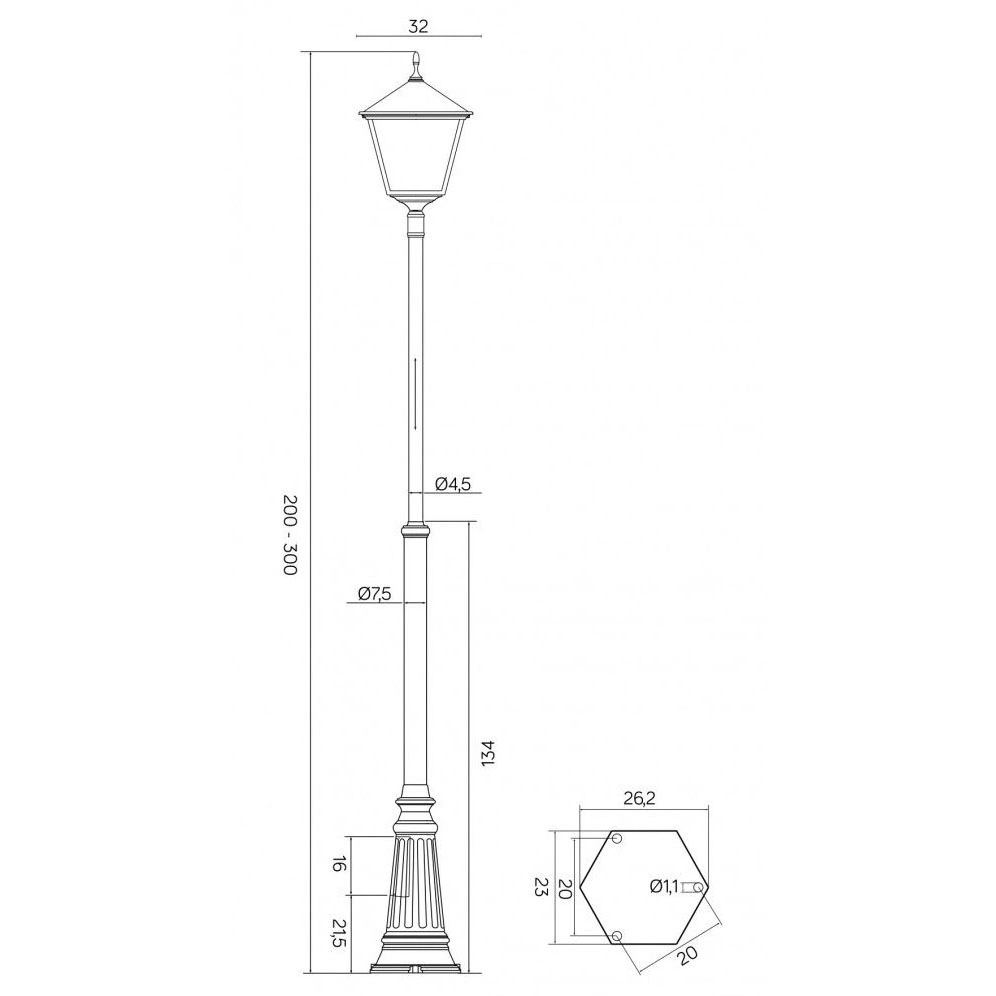 Stožár venkovní zahradní lampy LANTERN E27 Retro čtvercový OGMWN 1 BD KW 200-300cm černá Su-Ma