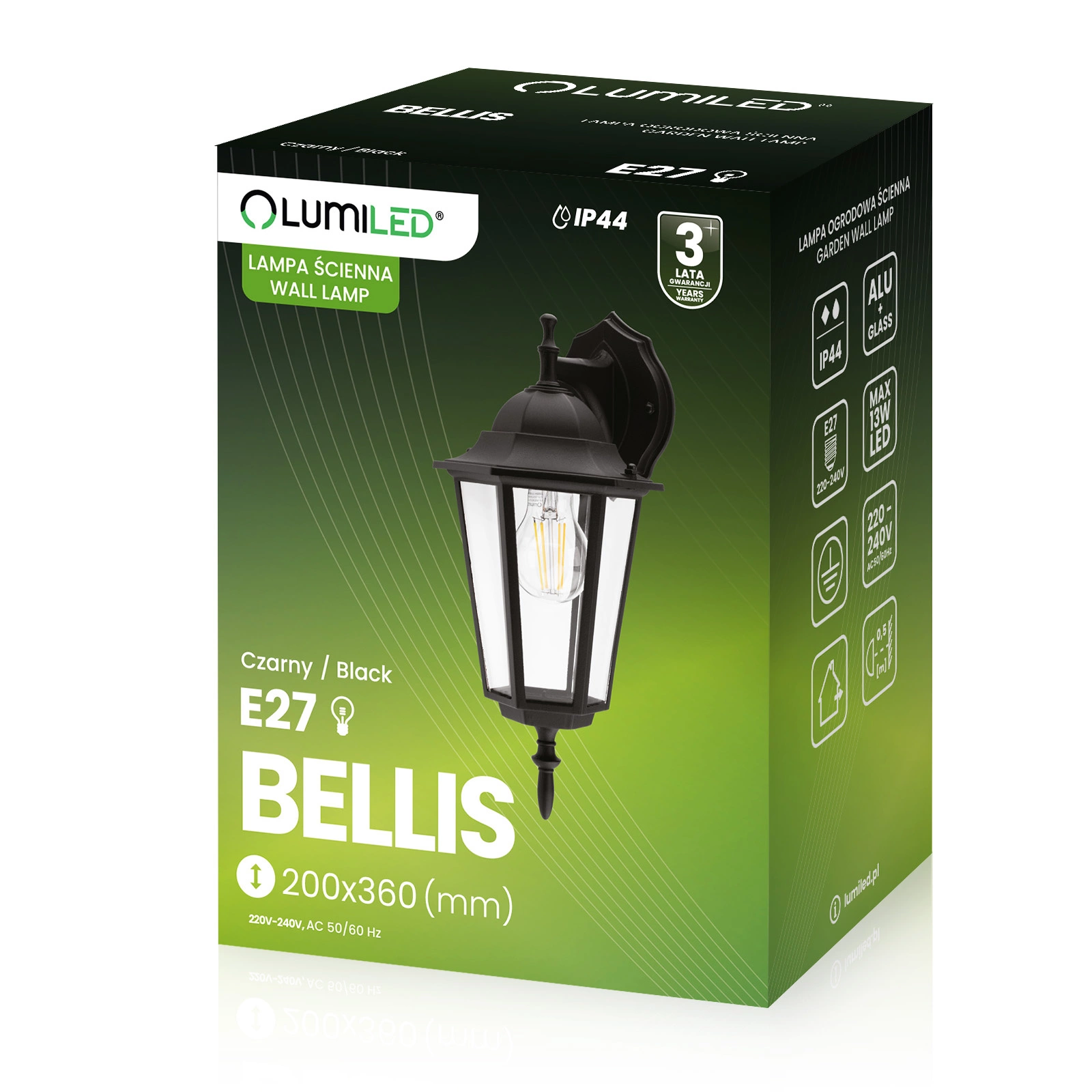 Nástěnné svítidlo, zahradní lampa značky LUMILED série BELLIS v černé barvě se vyznačuje především krásným vzhledem ve tvaru lampy a bezproblémovou montáží. Je to elegantní a praktické osvětlení, ideální pro venkovní použití kolem domu. Určeno pro montáž na povrch fasád budov. Zahradní lampa usnadní pohyb po pozemku večer, nejenže ho osvětluje, ale také mu dodává magickou atmosféru, aby ještě více zpříjemnila čas strávený venku.