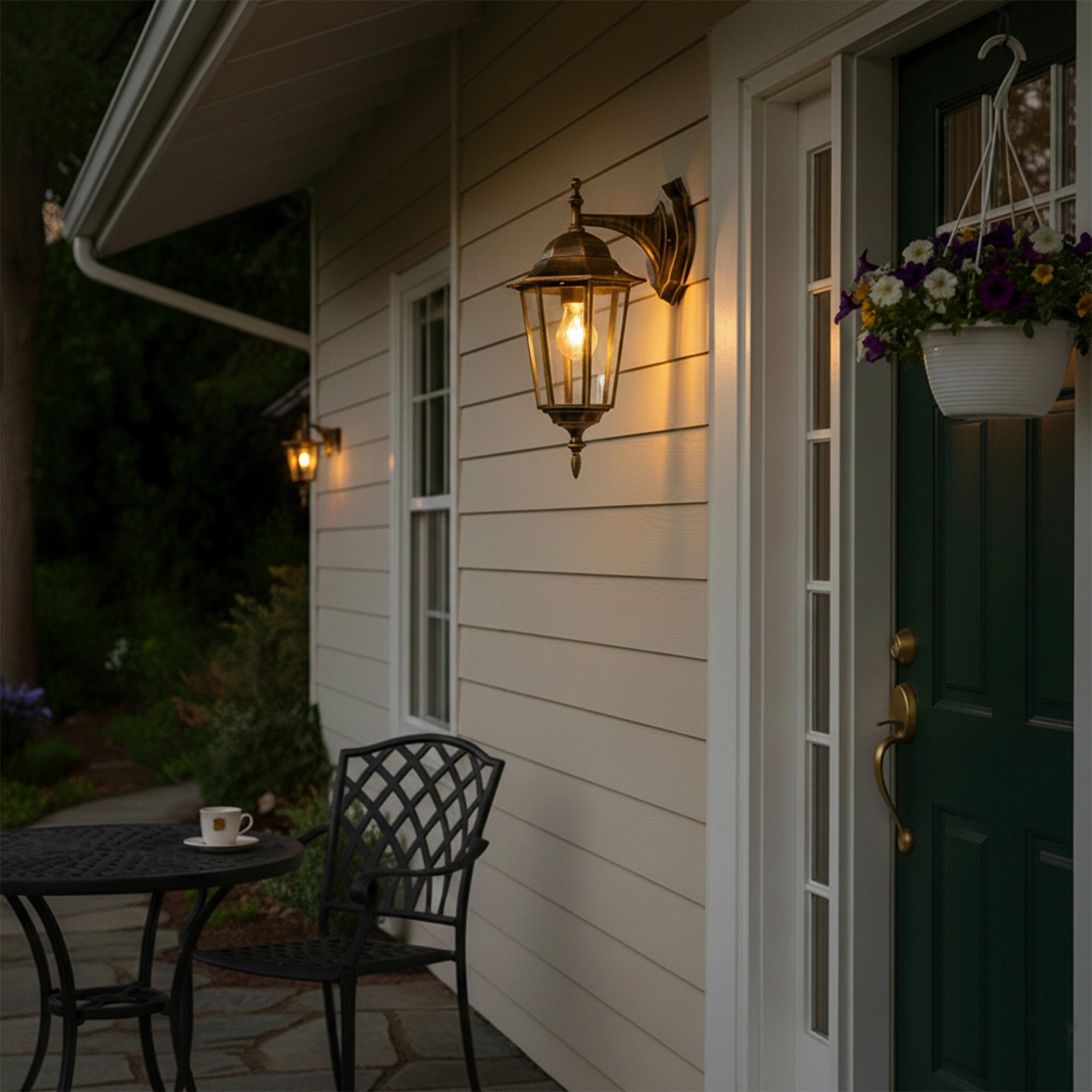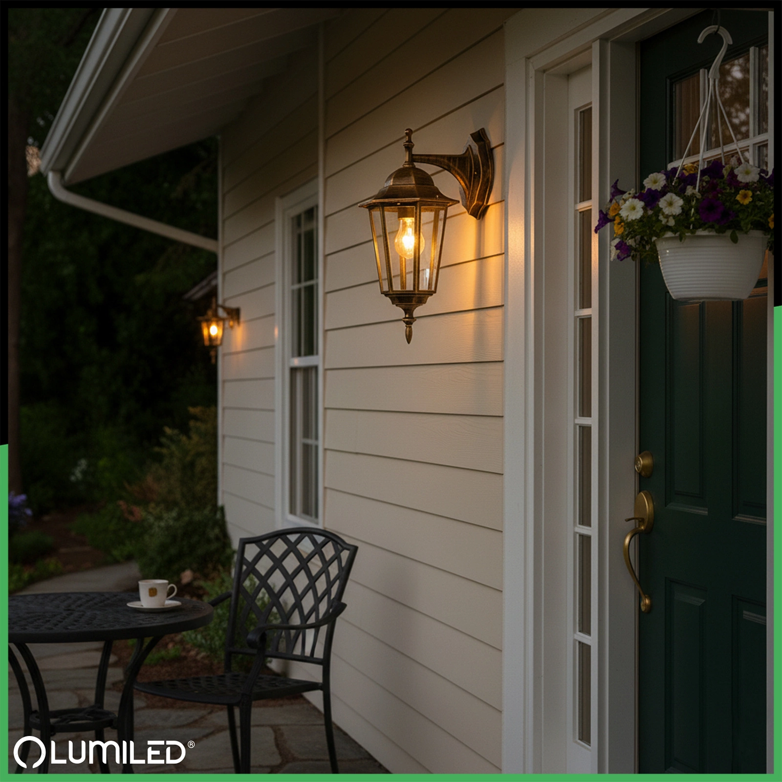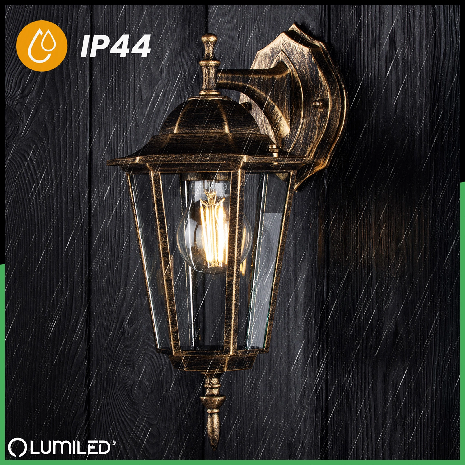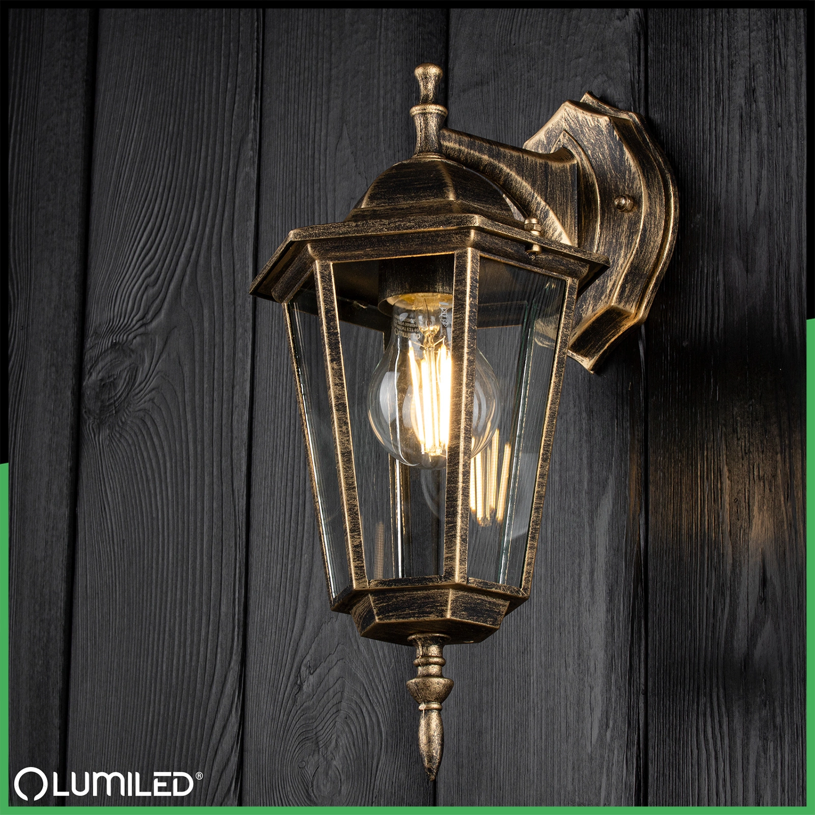Nástěnná zahradní lampa značky LUMILED série BELLIS v barvě patiny (staré zlato) se vyznačuje především krásným vzhledem ve tvaru lucerny a snadnou montáží. Toto elegantní a praktické osvětlení je ideální pro venkovní použití kolem domu. Je určena pro montáž na povrch fasád budov. Zahradní lampa usnadní pohyb po pozemku večer, nejenže jej osvětluje, ale také dodává magickou atmosféru, aby ještě více zpříjemnila čas strávený venku.