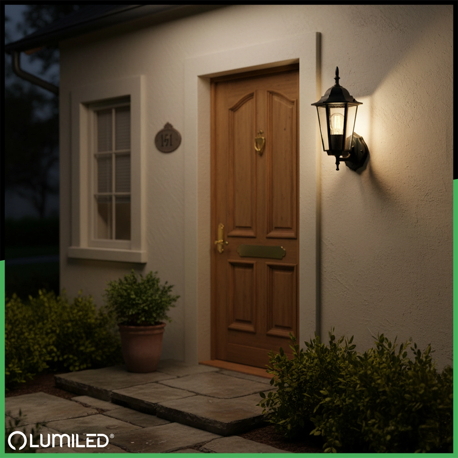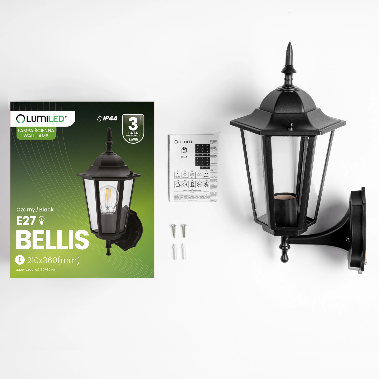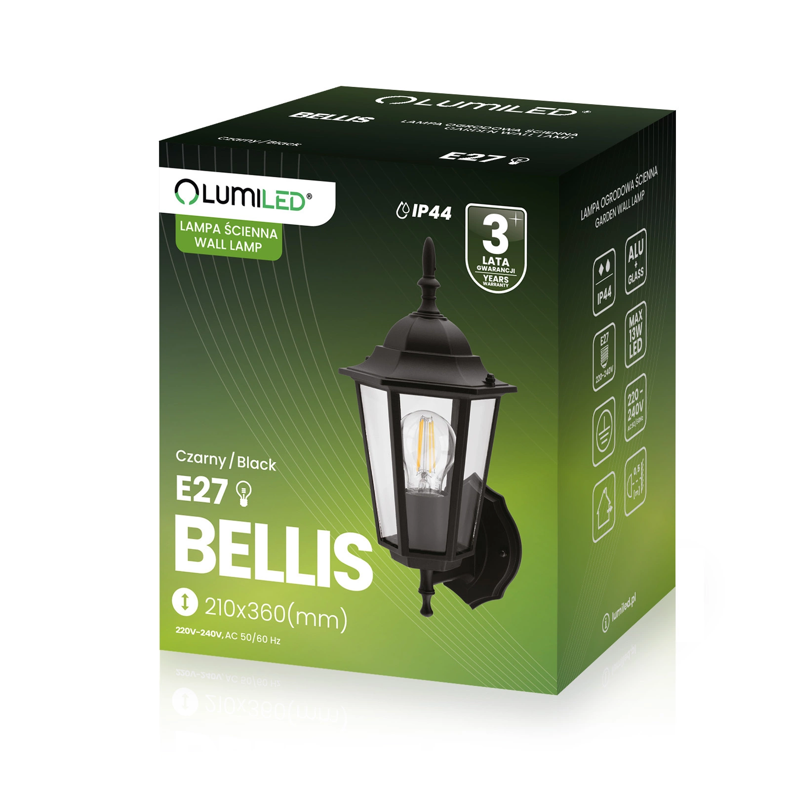 Černé zahradní nástěnné svítidlo ze série BELLIS od LUMILED se vyznačuje především krásným vzhledem ve tvaru lucerny a bezproblémovou montáží. Díky zvýšené odolnosti vůči povětrnostním vlivům se svítidlo používá především jako osvětlení balkonů, teras nebo verand. Použití oblíbeného závitu E27 ve svítidle nám umožňuje použít žárovku vhodnou pro naše potřeby. Nástěnné svítidlo BELLIS bylo vyrobeno s velkým důrazem na detail z kombinace vysoce kvalitního hliníku a skla. Díky tomu vypadá nejen velmi stylově, ale také si zachovává plnou estetiku po mnoho let.
