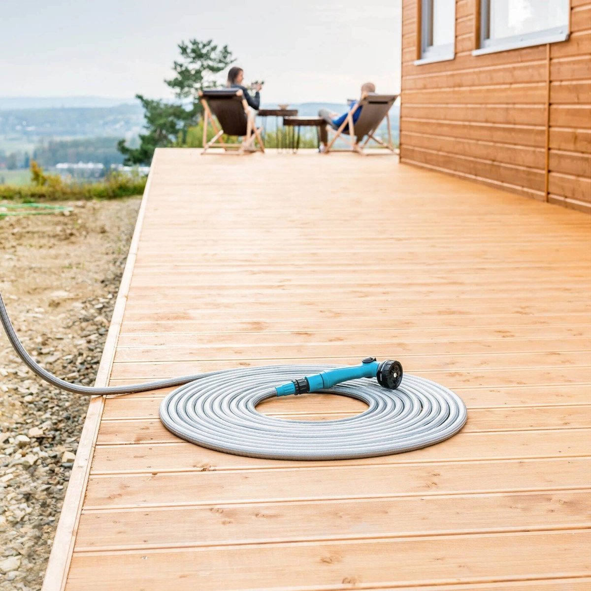 Hadice se skvěle hodí na zahrady k zalévání rostlin, zavlažování trávníku a dalším každodenním činnostem. Hadice od CELLFAST je příjemná na dotek a díky výrazné šedé barvě ji snadno najdete v trávě, takže se při sekání trávníku nepoškodí.