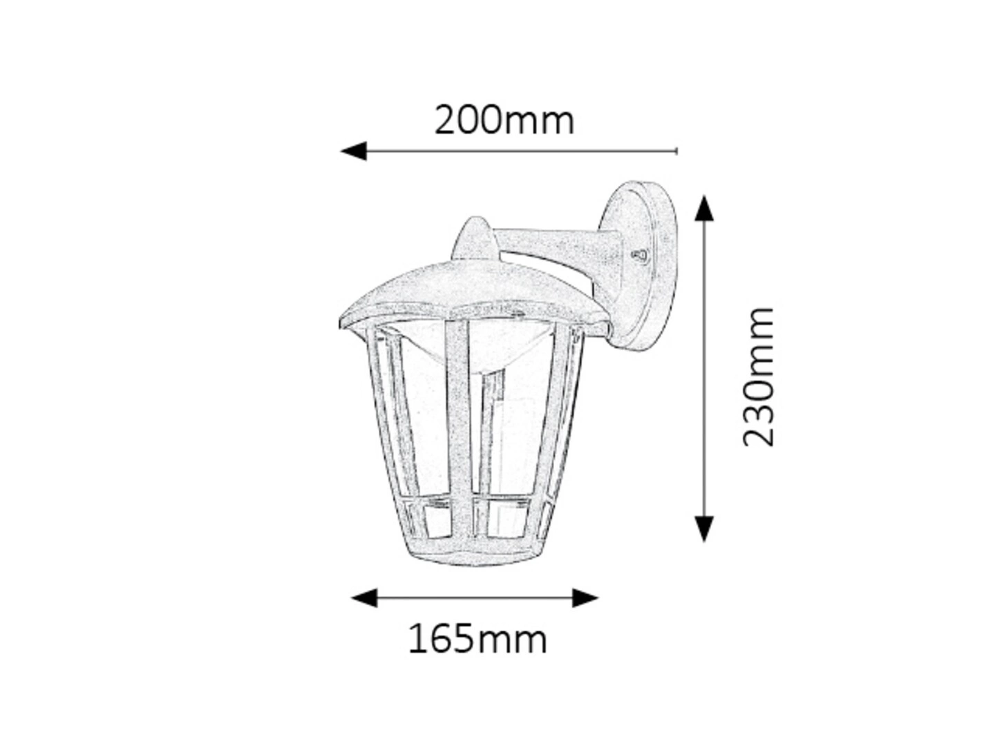 Nástěnné svítidlo SORRENTO je zajímavé venkovní svítidlo s integrovaným 8W LED světelným zdrojem (nevyměnitelné), které bude dokonalým doplňkem venkovního osvětlení vašeho domova. Lampa je vyrobena z vysoce kvalitního plastu . Stupeň krytí je IP44 , který zajišťuje těsnost proti vniknutí předmětů o maximálním průměru 1 mm a proti stříkající vodě z libovolného směru. Průhledné stínidlo dokonale rozloží světlo v bezprostředním okolí. Svítidlo SORRENTO v klasickém stylu se skvěle hodí k osvětlení chodeb domů nebo k efektivnímu osvětlení fasádních stěn.