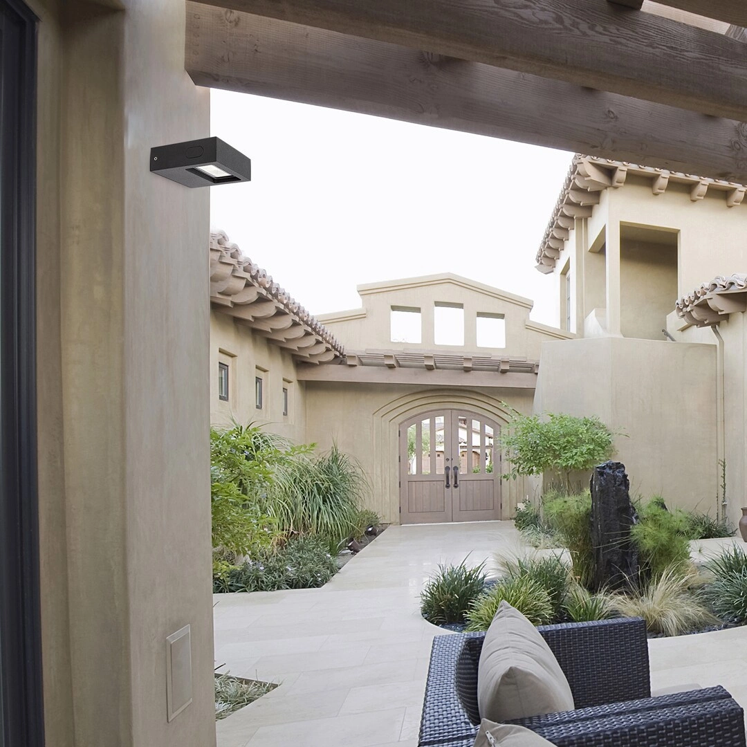 Nástěnné svítidlo GANGES je zajímavé venkovní svítidlo s integrovaným 7W LED světelným zdrojem (nevyměnitelné), které bude dokonalým doplňkem venkovního osvětlení vašeho domova. Lampa je vyrobena z vysoce kvalitních materiálů: hliník a sklo . Stupeň krytí je IP65 , který zajišťuje úplnou těsnost a ochranu proti pevným částicím a nízkotlakým proudům vody. Poutavé svítidlo bude šířit neutrální bílé světlo do okolí. Světelný panel je pohyblivý , což umožňuje nasměrovat paprsek světla na místo vhodné pro uživatele. Lampa GANGES v moderním stylu se skvěle hodí k osvětlení domovních chodeb nebo k efektivnímu osvětlení fasádních stěn.