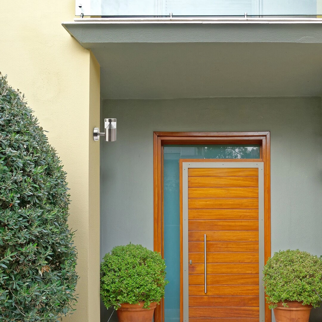 Nástěnné svítidlo LISBON je zajímavé venkovní svítidlo s integrovaným 7W LED světelným zdrojem (nevyměnitelné), které bude dokonalým doplňkem venkovního osvětlení vašeho domova. Lampa je vyrobena z vysoce kvalitních materiálů: nerezová ocel a plast . Stupeň ochrany je IP54 , který poskytuje vysokou ochranu proti škodlivému prachu a kapkám padajícím pod libovolným úhlem ze všech stran (déšť). Lampa LISBON v moderním stylu se skvěle hodí k osvětlení domácích chodeb nebo k efektivnímu osvětlení fasádních stěn.