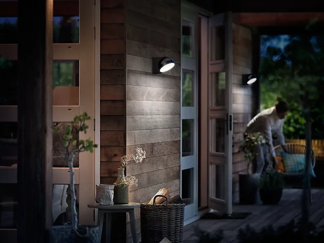 Nástěnné svítidlo MIMOZA je svítidlo značky PHILIPS se zcela novým designem. Má pohyblivý LED panel , který umožňuje nasměrovat světlo kamkoli. Lampa byla navržena speciálně pro venkovní použití, takže je odolná a osvětlí zahradu po dlouhou dobu. Svítidlo má integrovaný 7W LED světelný zdroj (nevyměnitelný). Bezpečné venkovní použití zajišťuje zvýšená odolnost na úrovni IP44 . Zahradní nástěnné svítidlo MIMOZA se skvěle hodí pro efektivní osvětlení vnějších fasád budov.