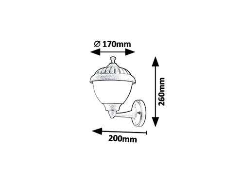 Nástěnné svítidlo MODESTO je zajímavé venkovní svítidlo s prostorem pro jeden světelný zdroj E27 max. 40W , který bude perfektním doplňkem k vnějšímu osvětlení vašeho domova. Lampa je vyrobena z vysoce kvalitních materiálů: kov a plast . Stupeň krytí je IP44 , který zajišťuje těsnost proti vniknutí předmětů o maximálním průměru 1 mm a proti stříkající vodě z libovolného směru. Mléčné stínidlo pokrývající žárovku dokonale rozptýlí světlo v bezprostředním okolí. Svítidlo MODESTO v klasickém stylu se skvěle hodí k osvětlení chodeb domů nebo k efektivnímu osvětlení fasádních stěn.