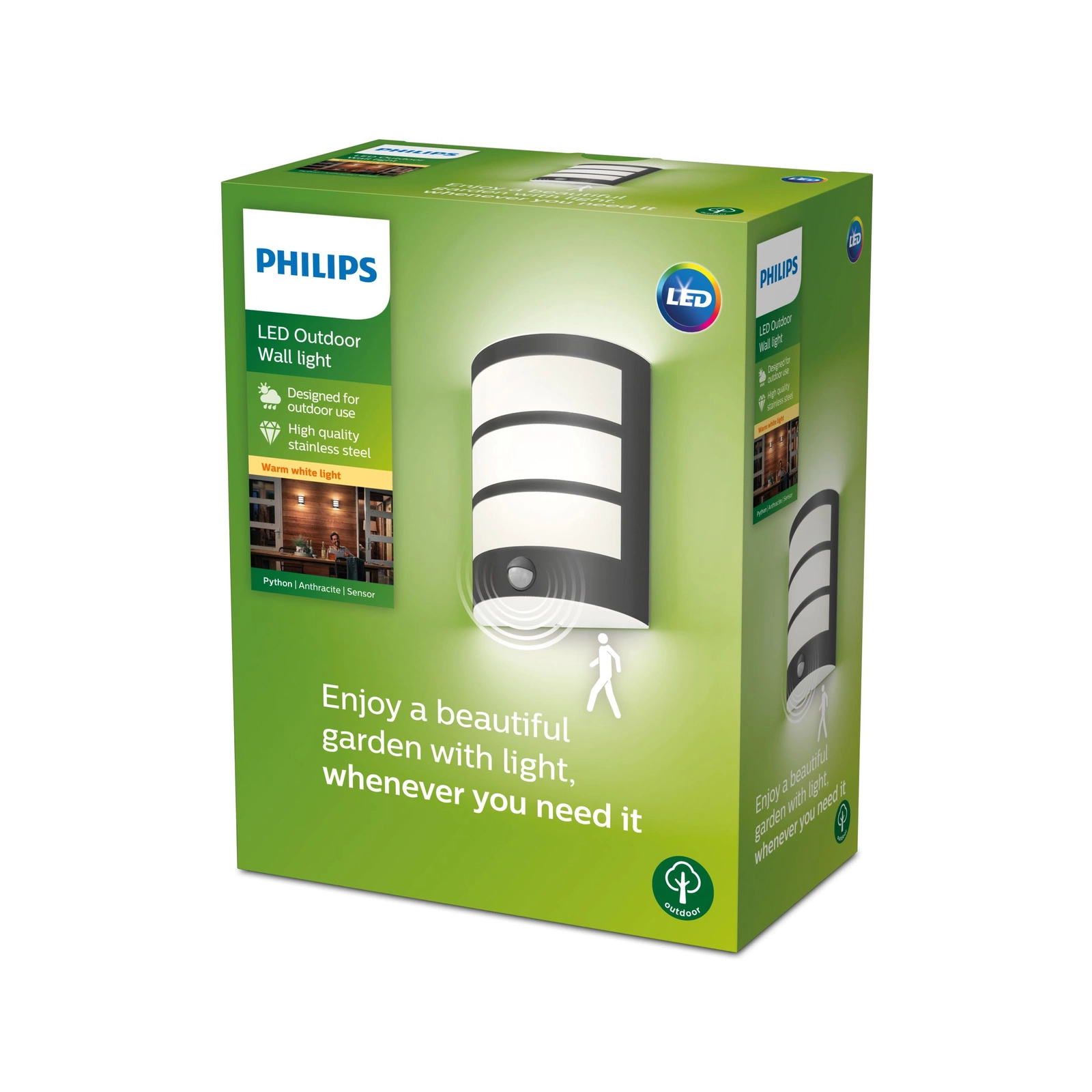 Zahradní lampa LED nástěnná lampa PYTHON IR myGarden 6W 2700K IP44 s pohybovým a soumrakovým senzorem černá PHILIPS