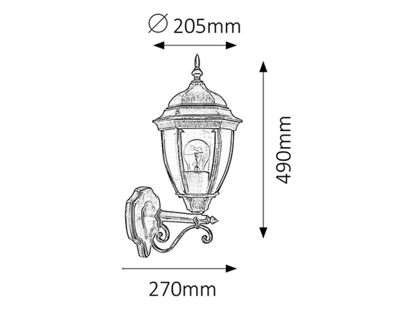 Nástěnné svítidlo TORONTO je zajímavé venkovní svítidlo s prostorem pro jeden světelný zdroj E27 max. 60W , který bude perfektním doplňkem k vnějšímu osvětlení vašeho domova. Lampa je vyrobena z vysoce kvalitních materiálů: kov a sklo . Stupeň krytí je IP44 , který zajišťuje těsnost proti vniknutí předmětů o maximálním průměru 1 mm a proti stříkající vodě z libovolného směru. Transparentní stínidlo zakrývající žárovku efektivně rozprostře světlo v bezprostředním okolí. Klasická lampa TORONTO je ideální pro osvětlení chodeb domů nebo pro efektivní osvětlení fasádních stěn.