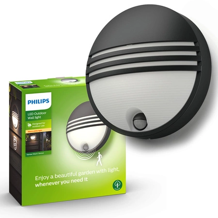 Zahradní lampa LED nástěnná lampa YARROW IR myGarden 6W 2700K IP44 kulatá s pohybovým senzorem černá PHILIPS