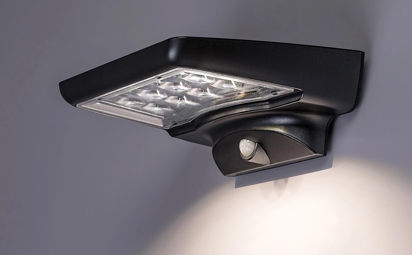 Zahradní LED solární nástěnná lampa MOSELLE 4W 4000K IP44 Down with Motion Sensor Černá RABALUX