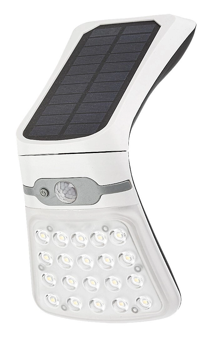 Zahradní LED solární nástěnná lampa ROGOVA 4W 4000K IP44 s pohybovým senzorem bílá RABALUX