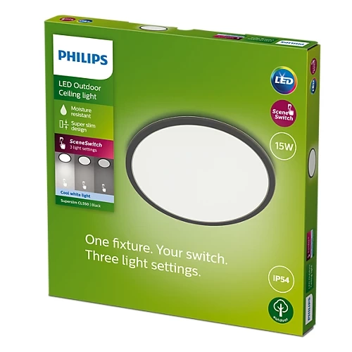 Zahradní LED stropní svítidlo venkovní SUPERSLIM CL550 15W 4000K IP44 kulaté stropní svítidlo černobílé PHILIPS