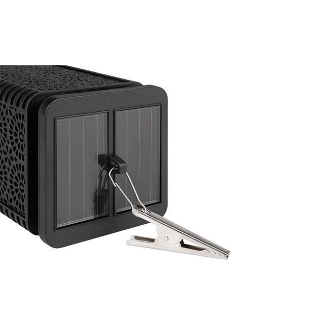 - Solární panel - s výkonem 2x 2V 30 mAh nabíjí vestavěnou baterii pomocí solární energie,