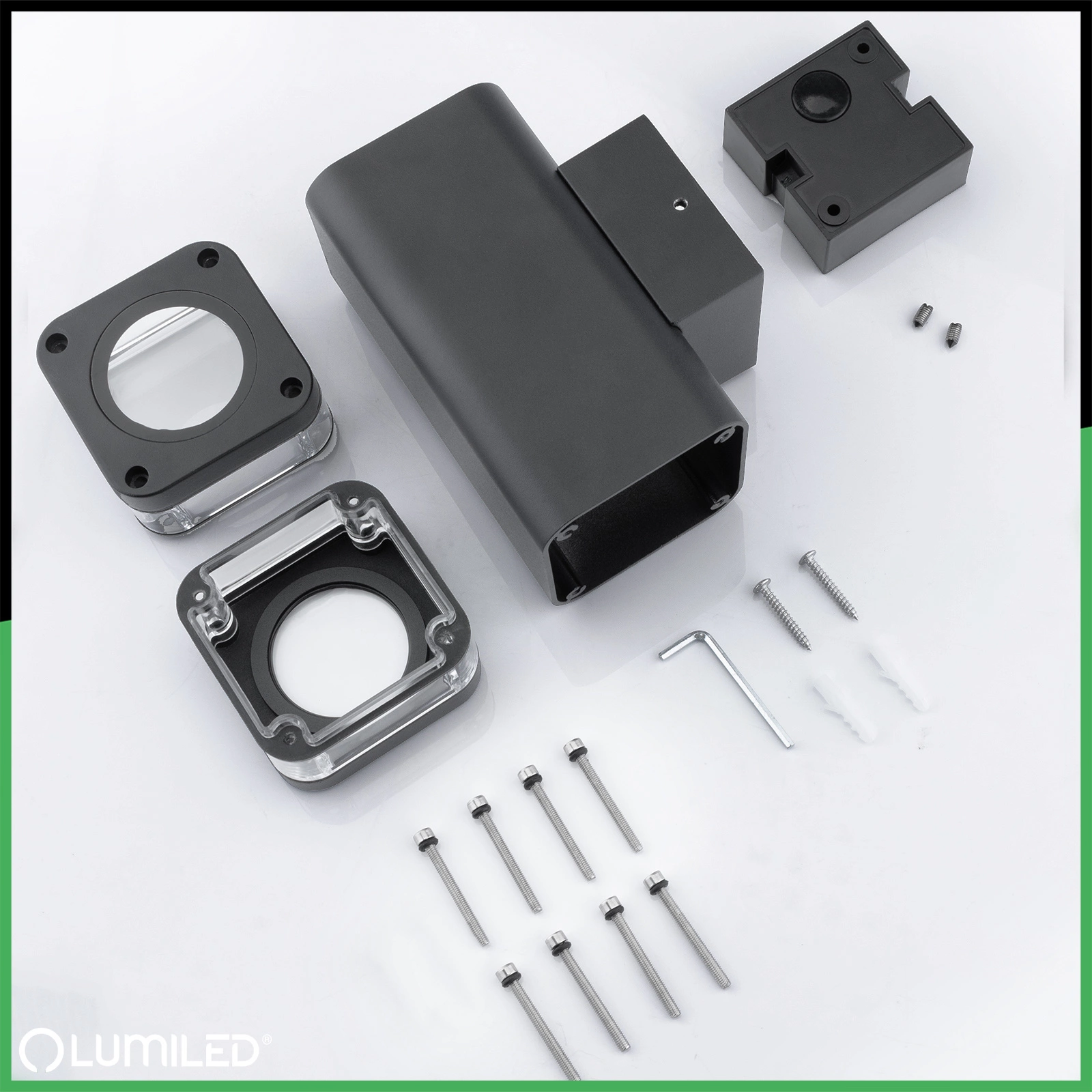 Fasádní lampa je vyrobena z vysoce kvalitního hliníku, který je odolný vůči korozi a nepříznivým povětrnostním podmínkám. Lehkost a tvrdost hliníku zaručují trvanlivost a snadnou montáž.