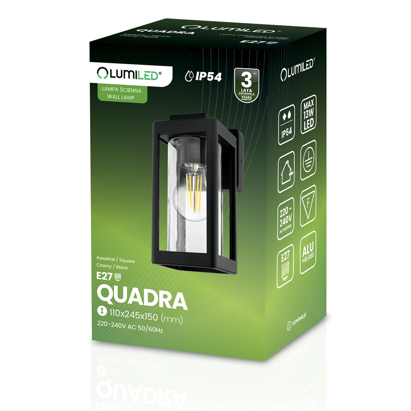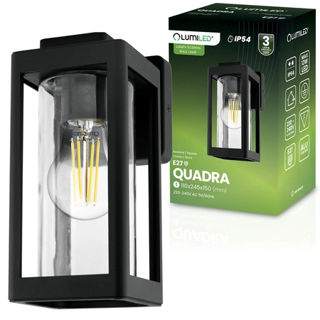 Nástěnné svítidlo a nástěnné svítidlo řady QUADRA od LUMILED je svítidlo vyrobené z vysoce kvalitního hliníku a plastu, ideální pro vnitřní i venkovní použití. Dokonale zvolené materiály použité k výrobě produktu se promítají do jeho vysoké kvality a těsnosti. Černé pouzdro dodává lampě jedinečný charakter. Lampa řady QUADRA byla vyrobena s velkým důrazem na každý detail. Hliník a plast použitý při výrobě jsou vysoce odolné proti mechanickému poškození. Lampa je vybavena oblíbenou paticí E27 (závit) , takže si můžeme zvolit vhodný výkon a barvu světla dle našich potřeb, maximální výkon světelného zdroje však nesmí překročit 12W.