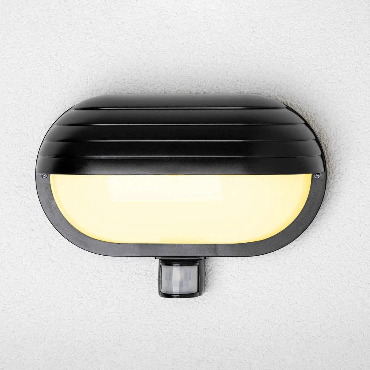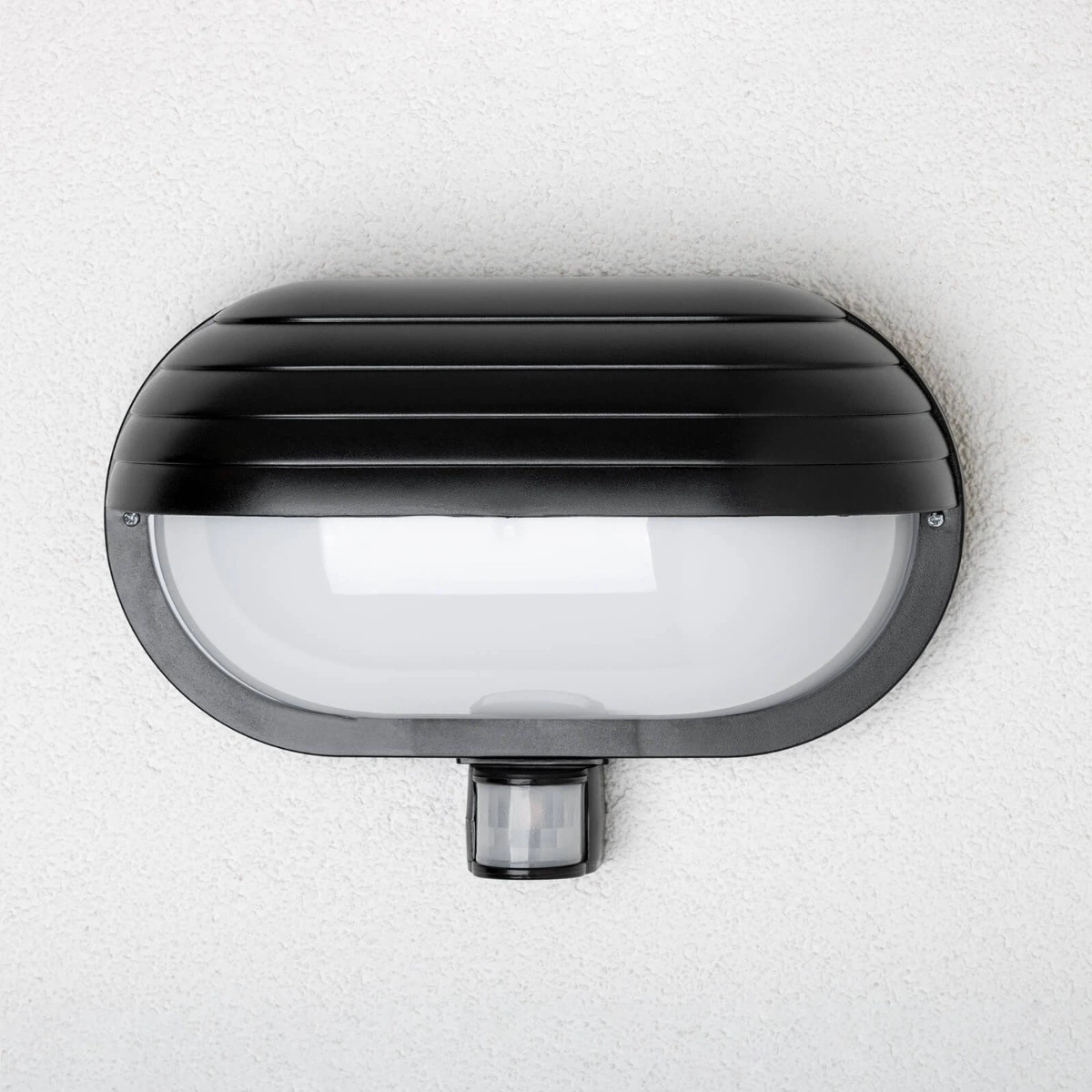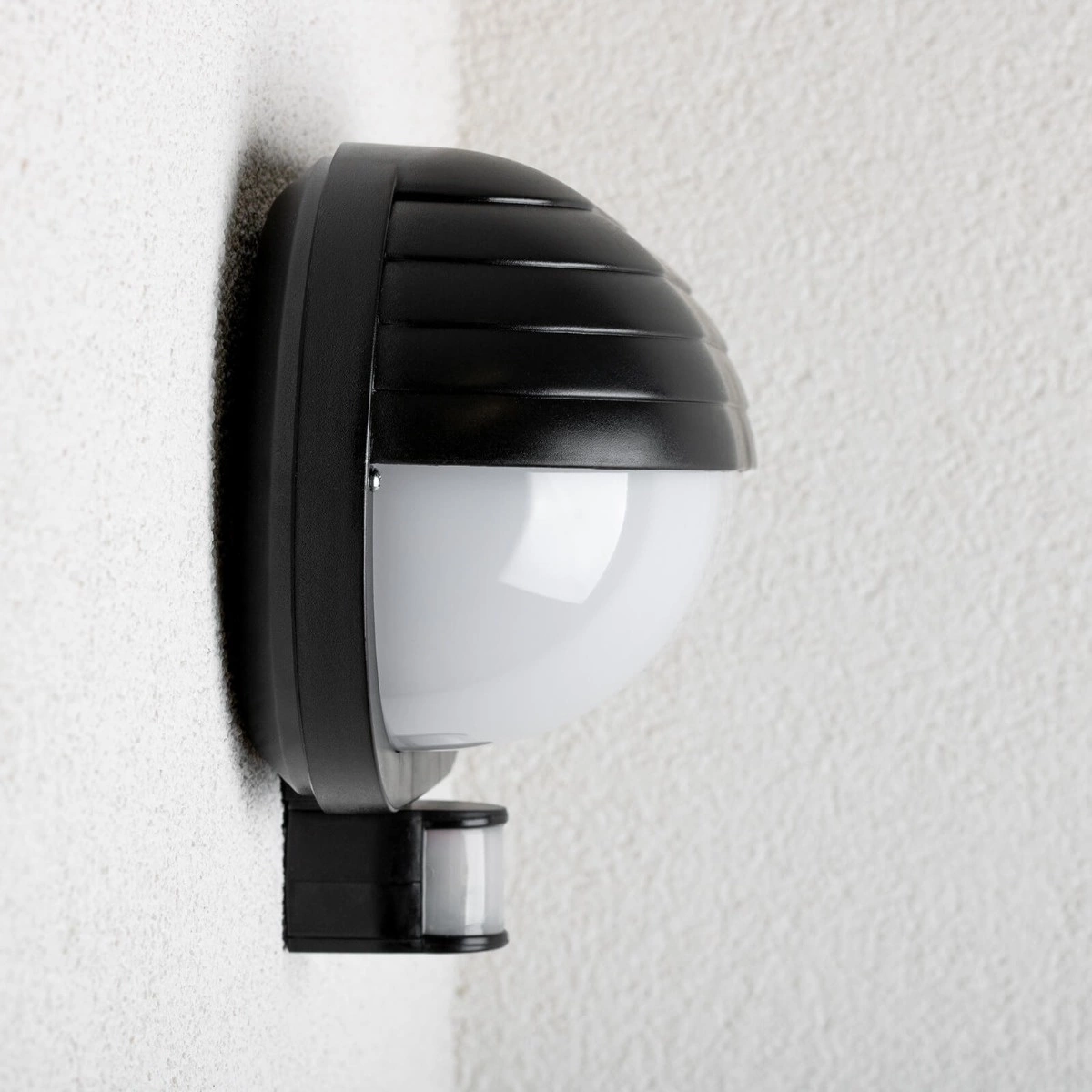 Zahradní nástěnná lampa FRODA E27 IP44 s PIR senzorem černá