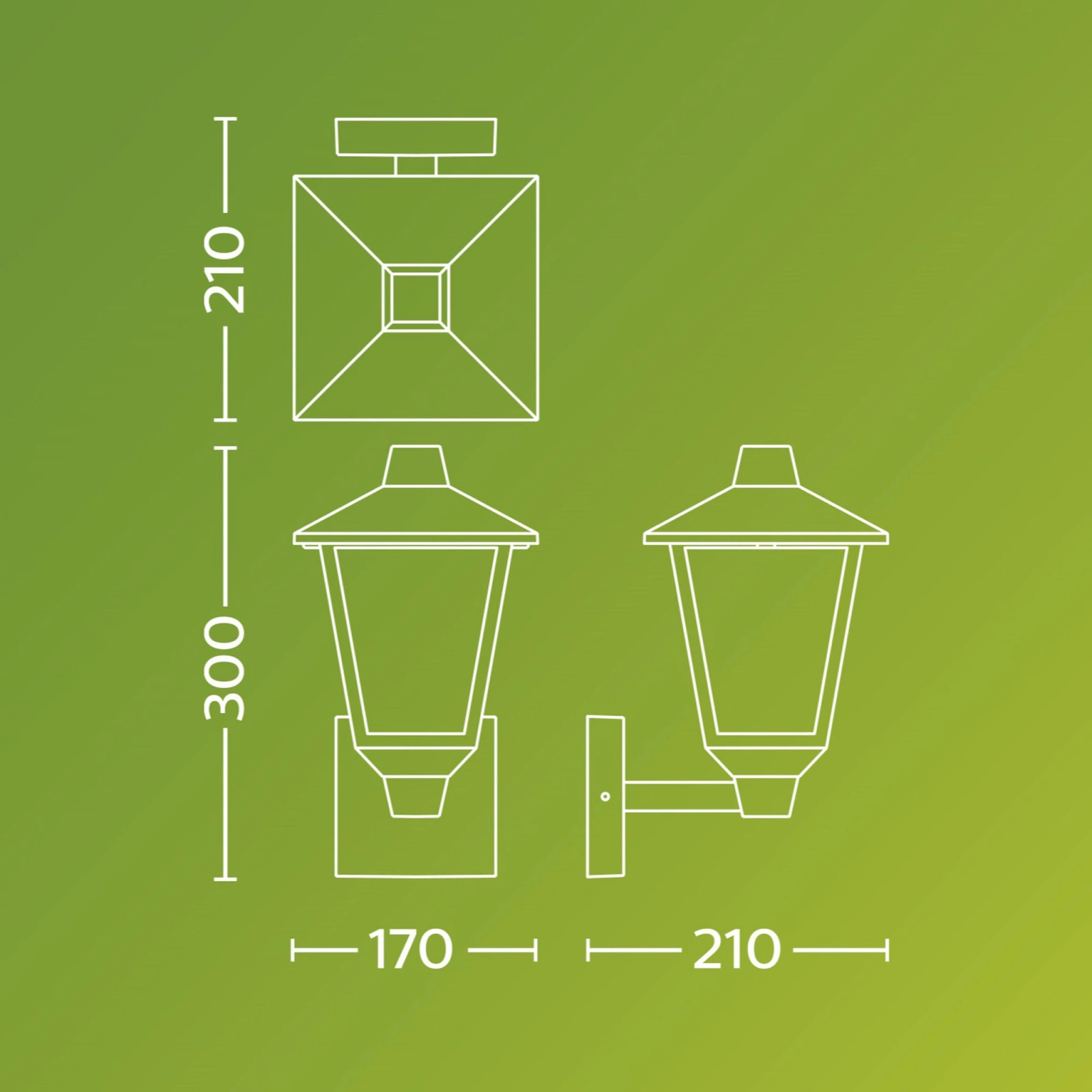 Venkovní nástěnné svítidlo Kinno Philips E27 IP44 je jedinečný výrobek společnosti Kinno Philips, který dokonale kombinuje klasický styl s moderní funkčností. Lampa je vyrobena z vysoce kvalitních materiálů a díky krytí IP44 je odolná vůči povětrnostním vlivům. Černá konstrukce jí dodává elegantní vzhled, který se dokonale hodí k různým zahradním a fasádním úpravám.