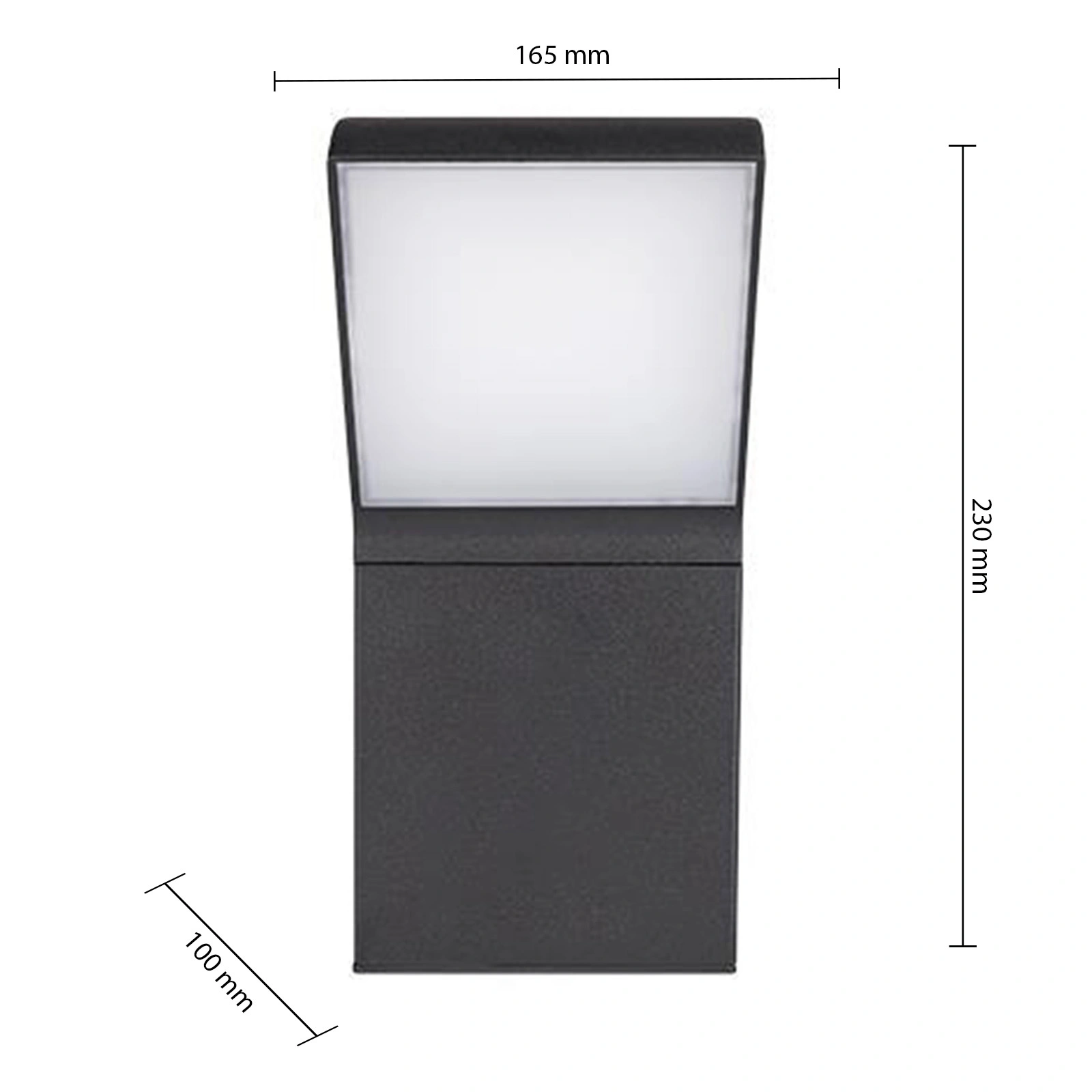Zahradní nástěnné svítidlo fasádní, tmavě šedá (RAL 7021), je svítidlo vyrobené z vysoce kvalitního hliníku a plastu. Použití hliníku při výrobě lampy ji činí odolnou, lehkou a tudíž snadnou instalací. Nástěnné svítidlo je vybaveno vestavěným 12W LED světelným zdrojem . Lampa poskytuje světelný tok 550lm, přičemž vyzařuje světlo s neutrální barvou světla - 4000K.