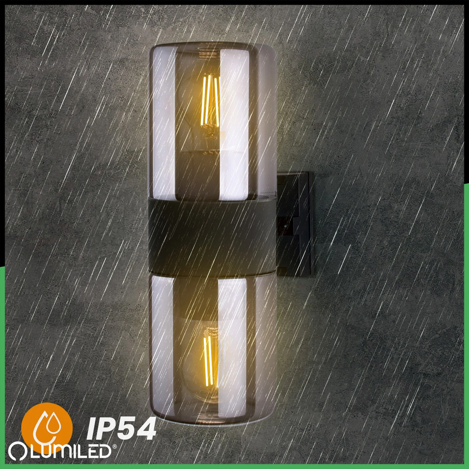 Moderní tvar nástěnné lampy podtrhuje architekturu budovy a dodává prostoru kolem domu eleganci. Kryt z plastu ABS je odolný, odolný proti rozbití, dešti, mrazu a UV záření. Stínidla z kouřového skla rovnoměrně rozptylují světlo, vytvářejí příjemnou atmosféru a zlepšují viditelnost po setmění. Jedná se o kombinaci funkčnosti a estetiky, která reálně zvyšuje komfort.