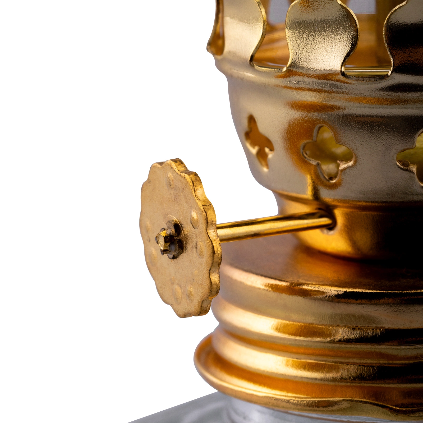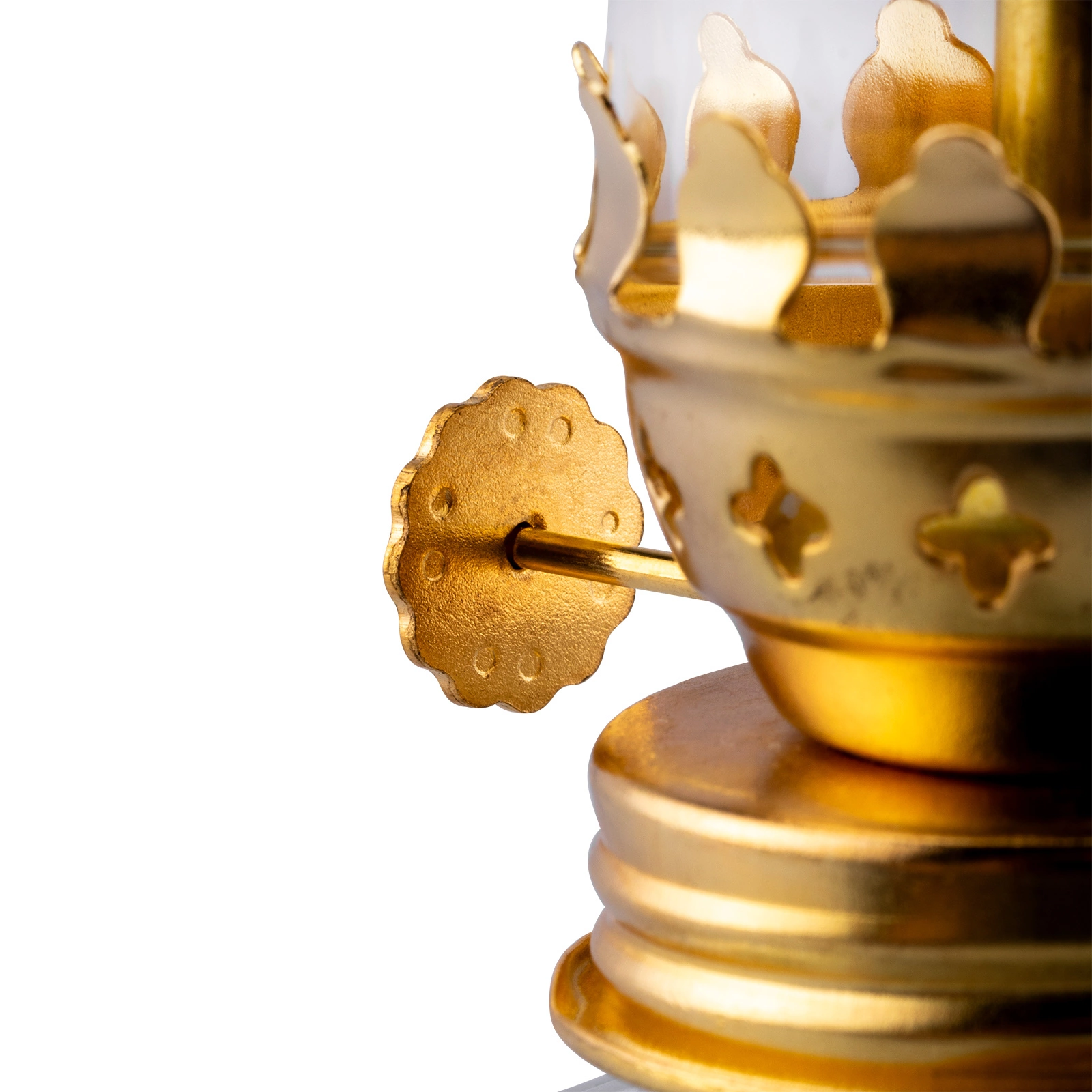 • Má kovový knoflík, který nám umožňuje nastavit výšku knotu