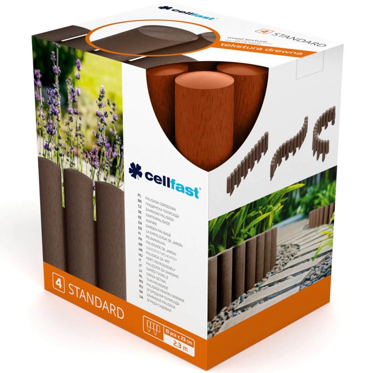 Zahradní palisáda 4 STANDARD je řešení, které je ideální pro oddělit různé části zahrady od sousedů, např. trávník ze záhonů nebo z obdělávané části zahrady. Obruba je připevněna k zemi pomocí pevným kolíkem vyvinutý s inovativní technologií, která zabraňuje jeho rozbití během jízdy v a drží palisádu pevně v zemi. Překážka byla vyrobena s maximálním důrazem na detail, struktura dřeva dotváří atmosféru naší zahrady a dokonale zapadá do zahradní krajiny. Vyrobeno z vysoce kvalitní plast bezúdržbové, je odolnost vůči UV záření a mrazu, a také zaručuje stálost barev po celá léta. Palisáda o rozměru 2.3 m a výškou 15.5 cm umožňuje pohodlné kombinovat a rozšiřovat o libovolný rozměr a tvarovat prakticky libovolným způsobem.