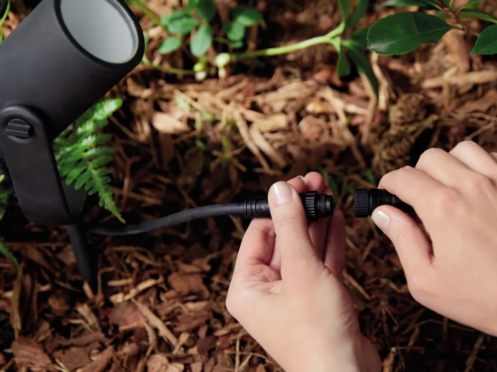 - Připojte svá zahradní světla k můstku Philips Hue Bridge a ovládejte osvětlení na dálku (prostřednictvím mobilní aplikace, mobilních ovladačů a ovladačů světel nebo hlasem).