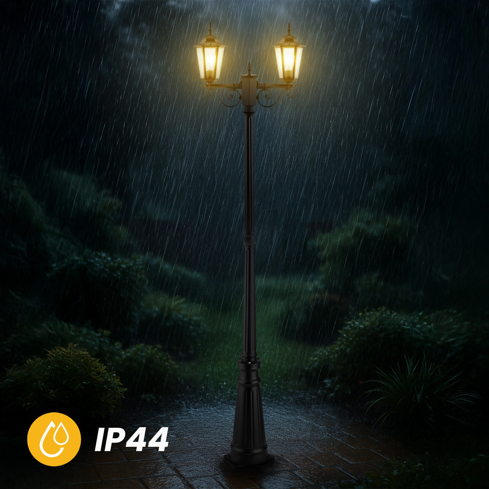Lampa je přizpůsobena pro provoz v nepříznivých povětrnostních podmínkách. Má stupeň krytí IP44, což znamená, že je odolná proti stříkající vodě a pronikání prachu, což z ní činí ideální lampu pro venkovní použití.