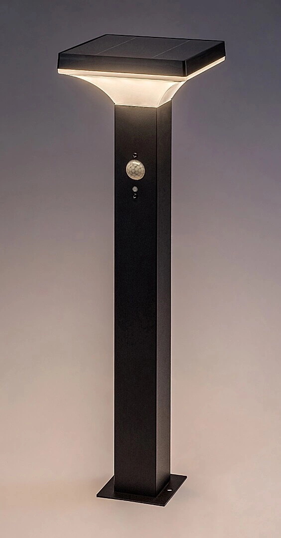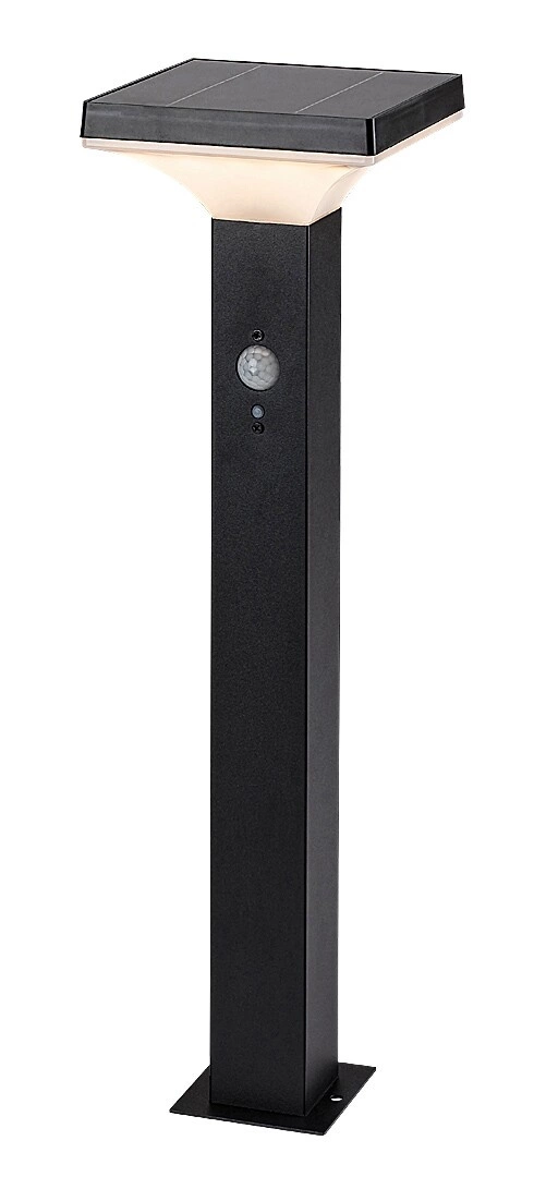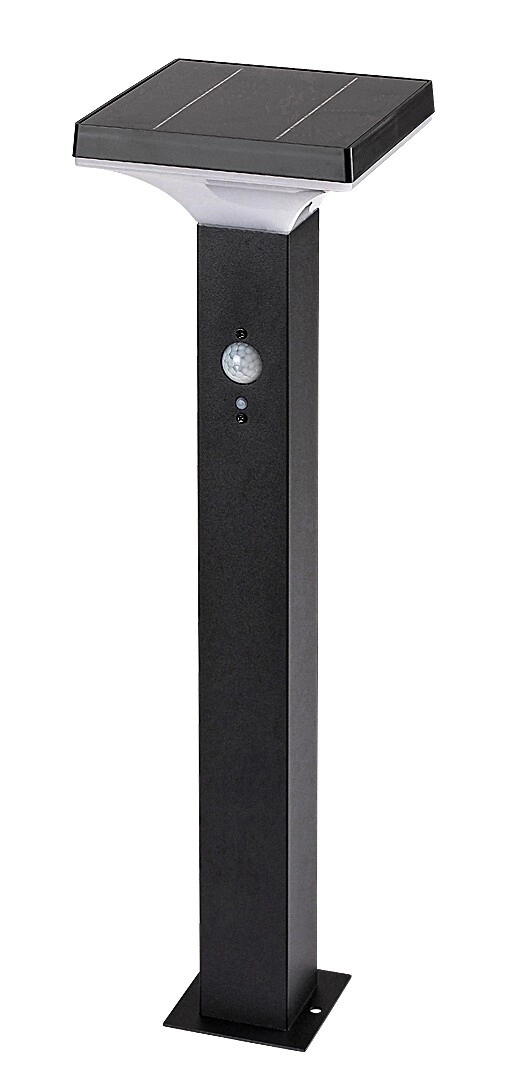 Zahradní stožár venkovní stojící solární 4W 400lm 3000K IP44 s pohybovým a soumrakovým senzorem černý moderní Geleen Rabalux
