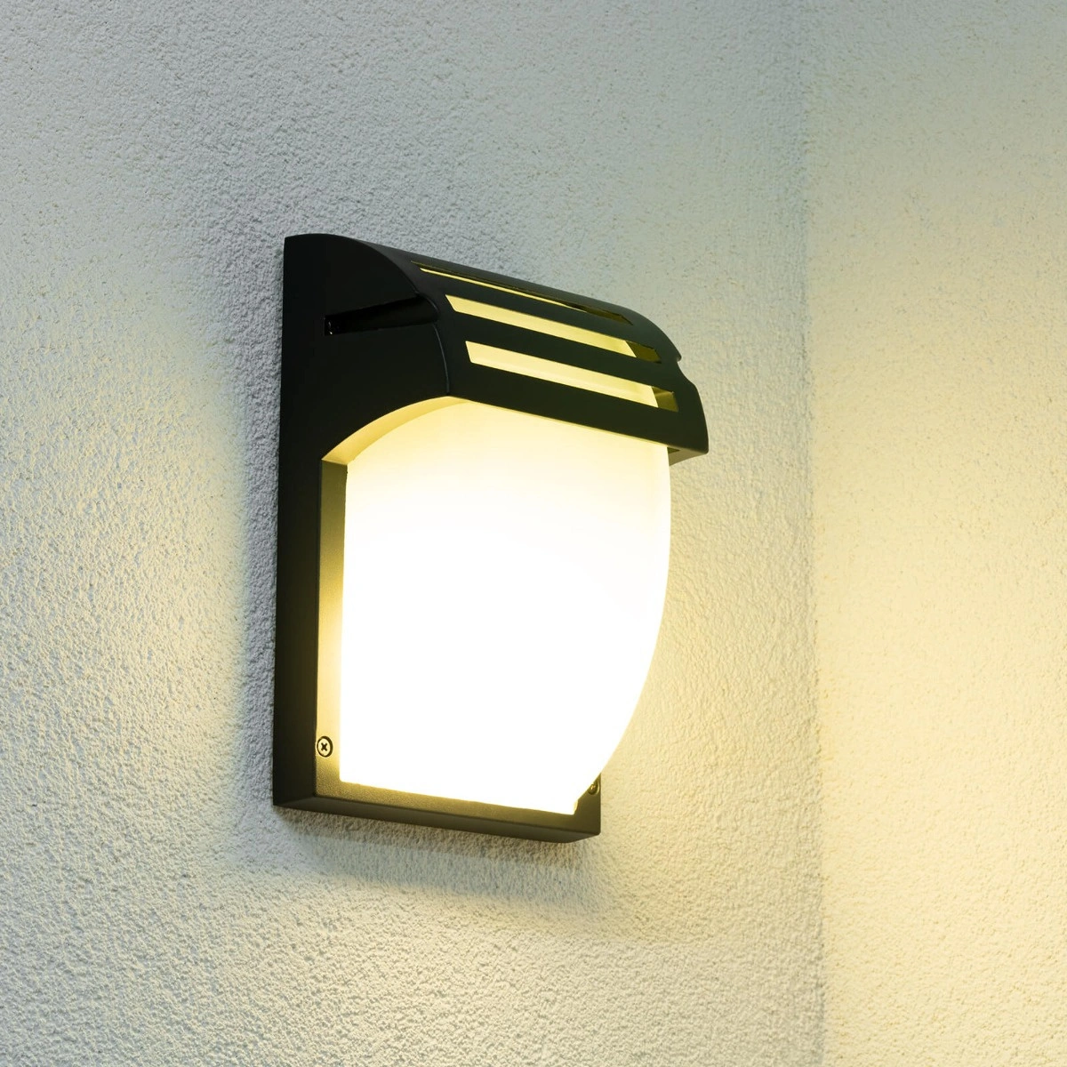 Lampa Kalio je určena pro povrchovou montáž na fasády venkovních budov a další. Má vyměnitelný světelný zdroj E27 max 60W (žárovka není součástí). Bezpečné použití svítidla ve venkovních prostorách zajišťuje stupeň těsnosti IP54 , což znamená zvýšenou ochranu proti pylu a vlhkosti. Mléčně bílé stínidlo v kombinaci s černým rámem působí, že lampa vypadá velmi stylově, i když je světlo vypnuté.
