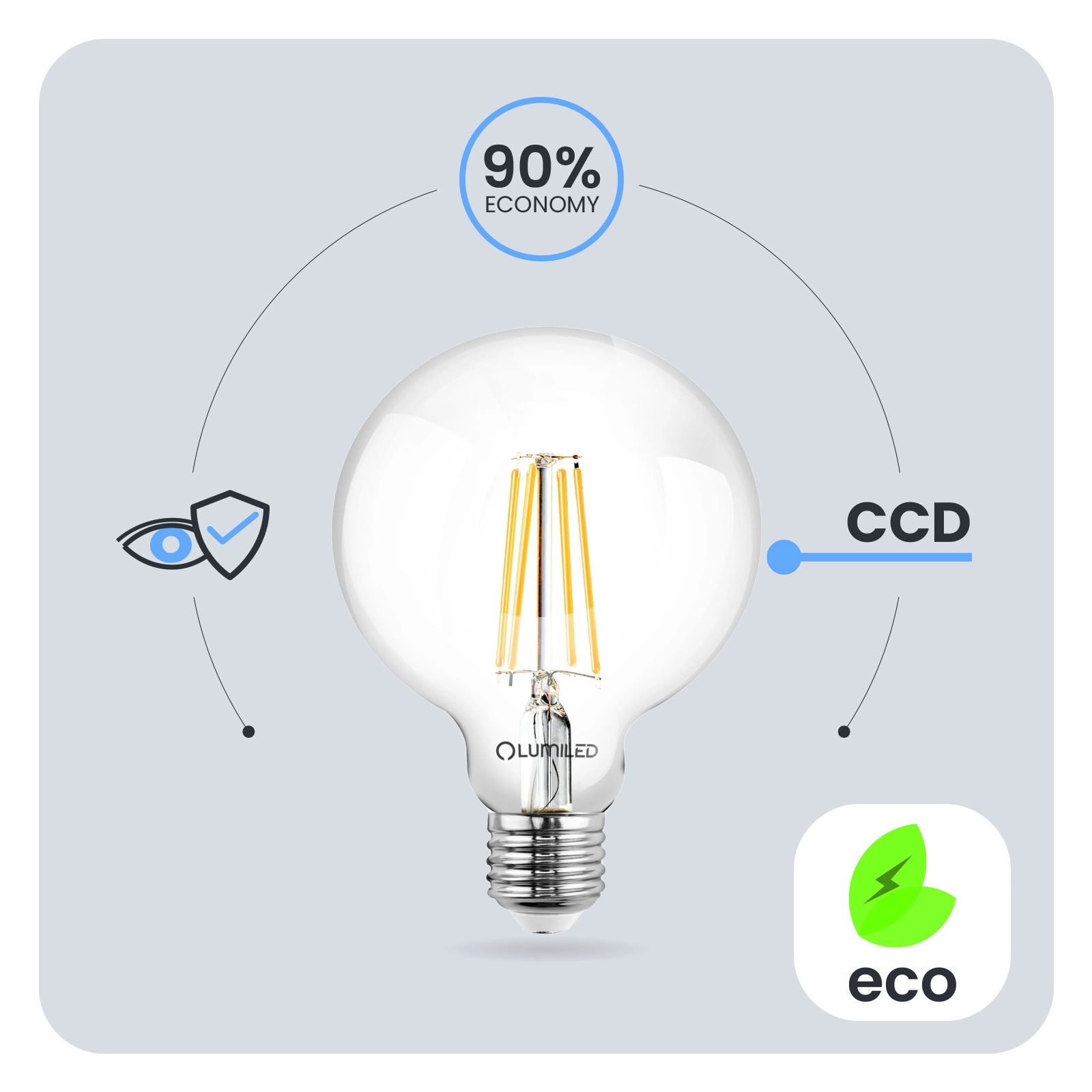 Žárovky LUMILED jsou navrženy s ohledem na uživatele. Špatná kvalita osvětlení může vést k únavě očí, a proto naše žárovky nabízejí řešení Bezpečné pro oči které poskytuje příjemné a šetrné osvětlení pro vaše oči v jakékoli místnosti, aniž by to bylo na úkor efektivity práce. Nevyzařuje také škodlivé UV ani infračervené záření.