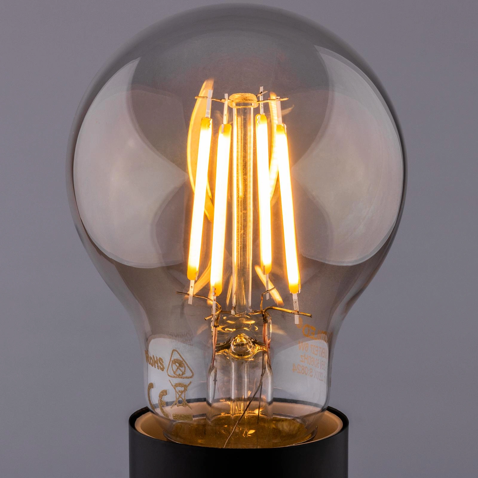 Žárovka LED A60, E27 6W = 50W 660lm 2200K Teplá bílá 360° Filament Smokey LUMILED