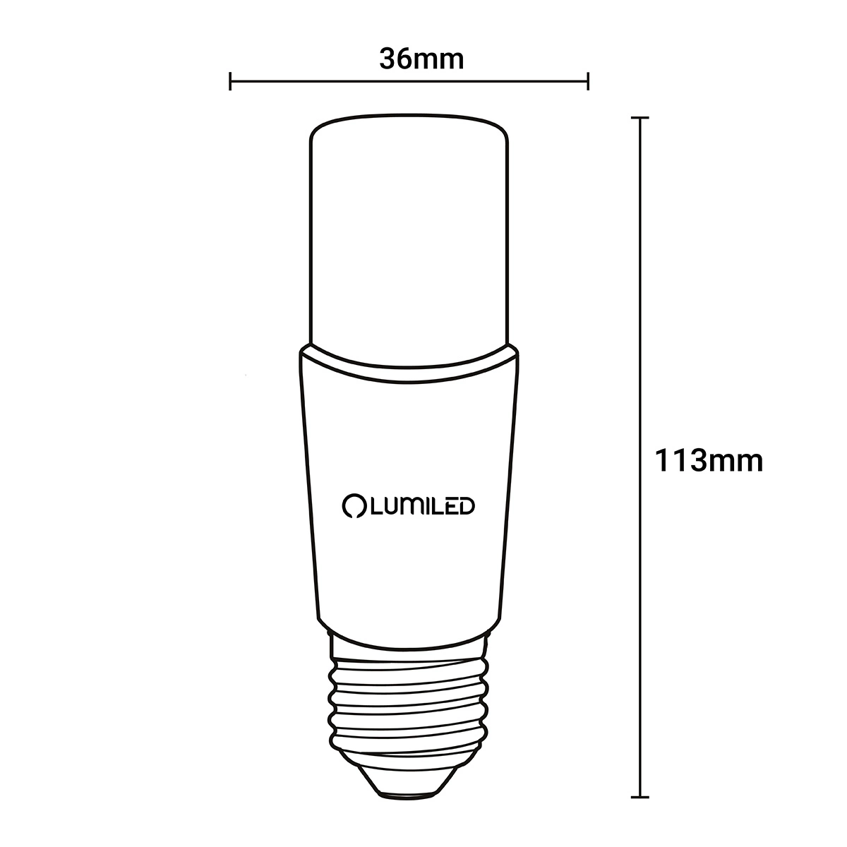 Žárovka LED Stick od renomované a v osvětlovací branži uznávané značky Lumiled s výkonem 10W (odpovídá klasické 75W žárovce) je vysoce kvalitní LED světelný zdroj se světelným tokem 1055lm a teplou barvou světla 3000K. Série žárovek STICK se vyznačuje malým stínidlem, které vydává příjemné světlo a zároveň se díky své velikosti (113x36mm) vejde prakticky do každého svítidla se závitem E27.