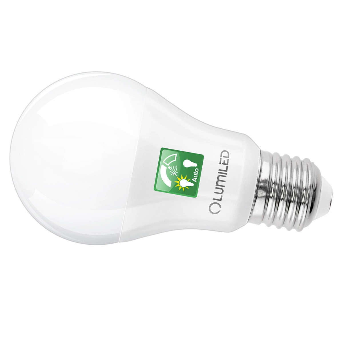 E27 A60 LED žárovka 10W = 75W 1055lm 3000K Teplá 260° s pohybovým a soumrakovým senzorem LUMILED