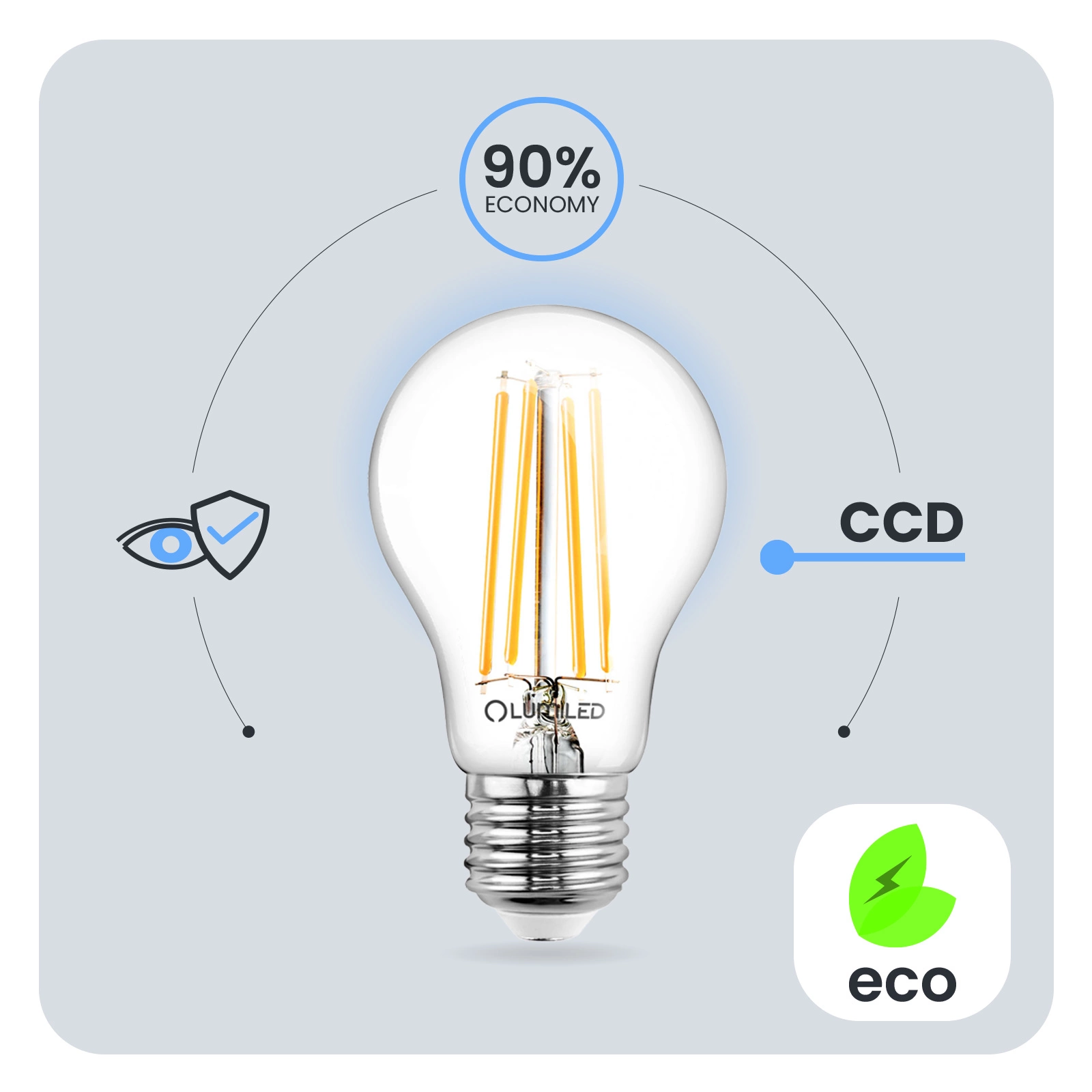 Žárovky LUMILED byly navrženy s ohledem na uživatele. Špatná kvalita osvětlení může vést k únavě očí, a proto naše žárovky s technickým vývojem Eye Safe poskytnou pohodlné a přátelské osvětlení pro vaše oči v každé místnosti.