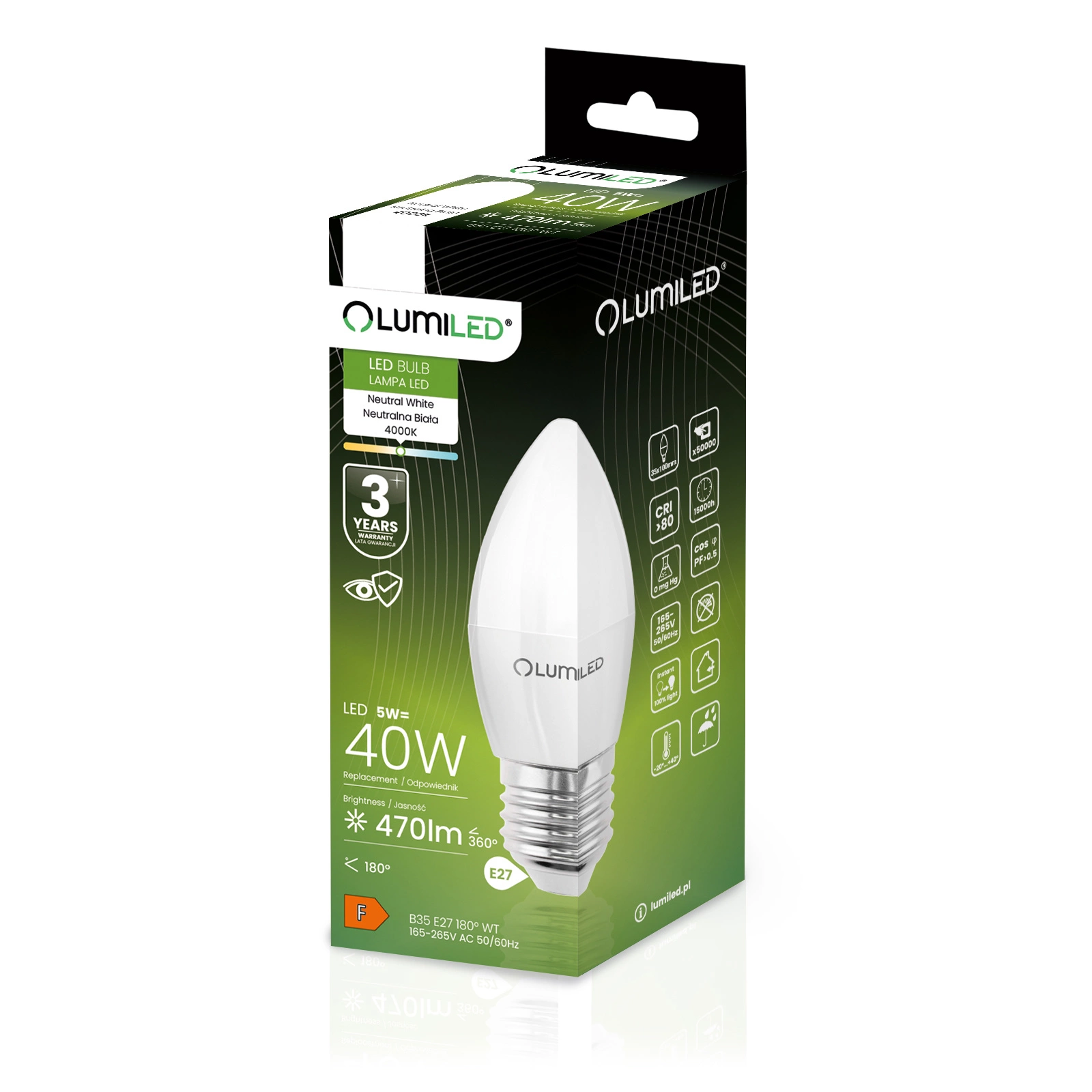 Úsporná LED žárovka B35 5W je osvědčenou a nejlepší volbou pro univerzální aplikace. Vhodné pro instalaci do všech standardních modelů stropních svítidel se šroubovací paticí E27.