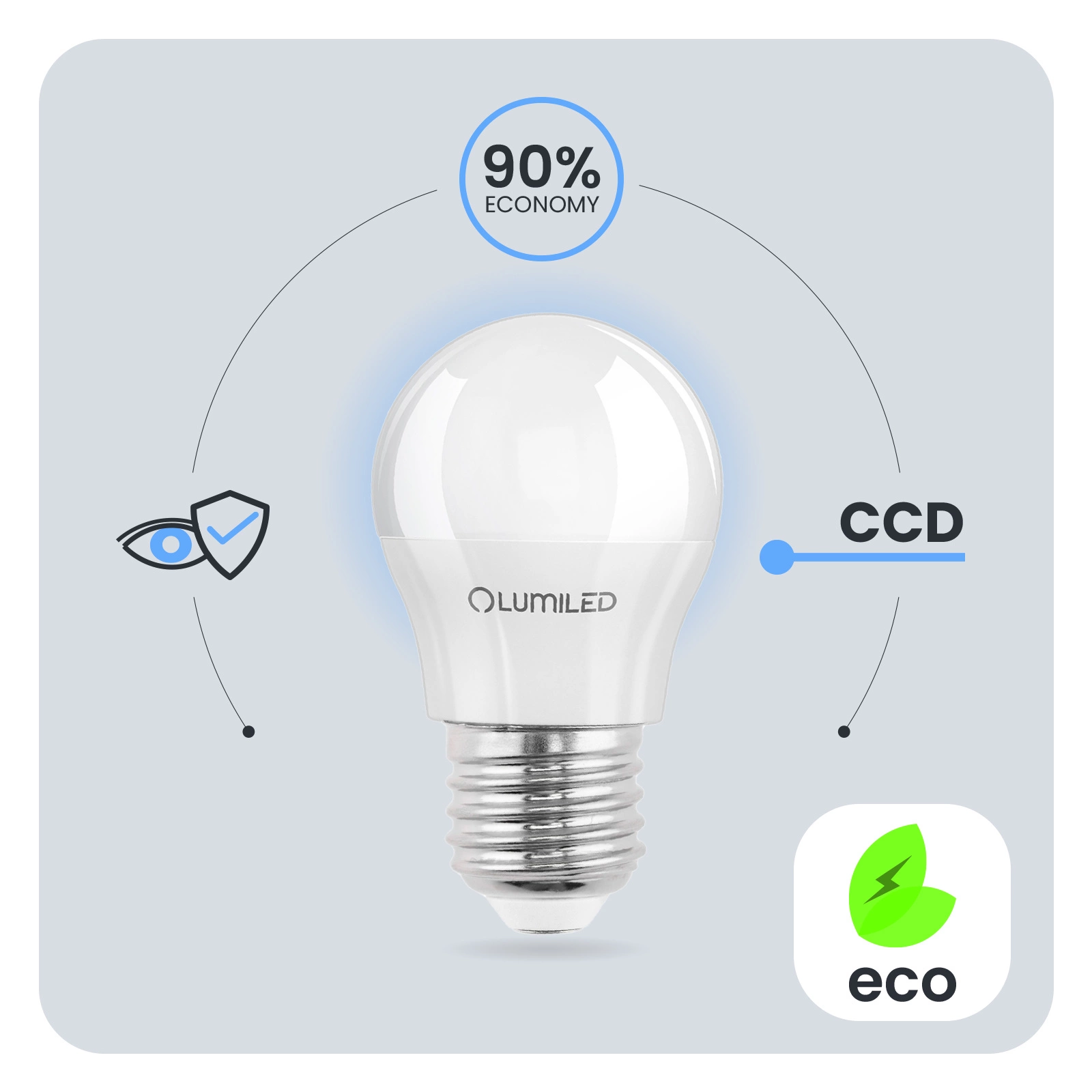 Žárovky LUMILED jsou navrženy s ohledem na uživatele. Špatná kvalita osvětlení může vést k únavě očí, a proto naše žárovky nabízejí řešení Bezpečné pro oči které poskytuje příjemné a šetrné osvětlení pro vaše oči v jakékoli místnosti, aniž by to bylo na úkor efektivity práce. Nevyzařuje také škodlivé UV ani infračervené záření.