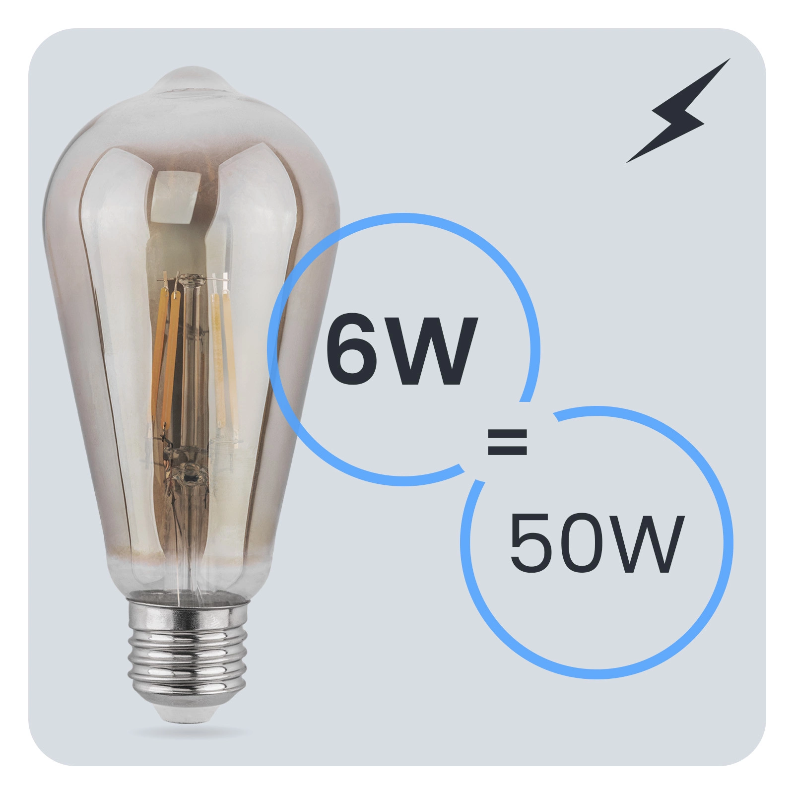 Žárovka LED EDISON E27, ST64 6W = 50W 420lm 2200K Teplá bílá 360° Filament Smokey LUMILED
