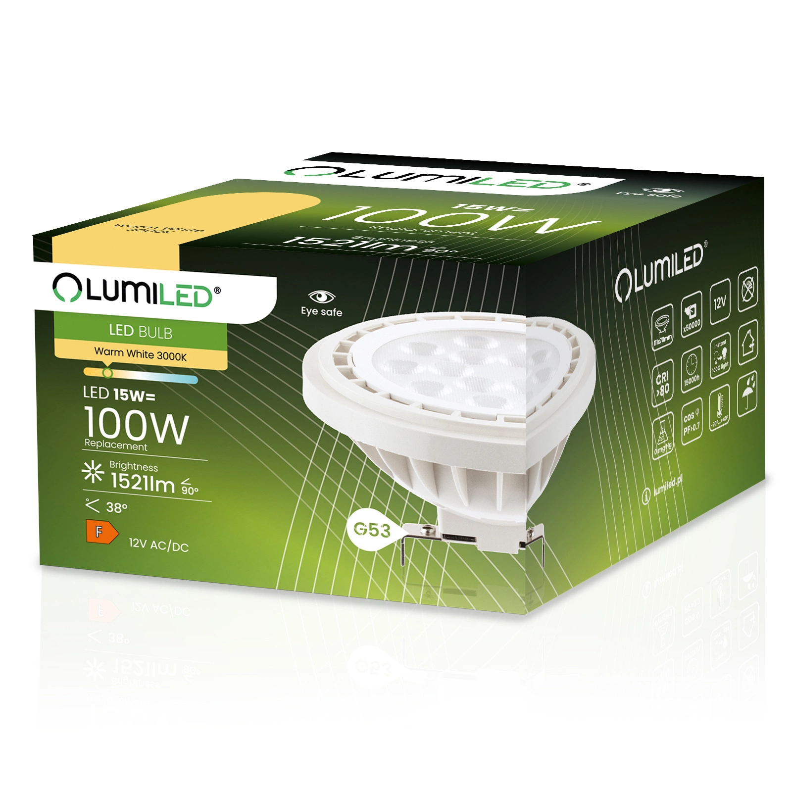 LED žárovka od renomované a v osvětlovacím průmyslu uznávané značky Lumiled ve tvaru reflektoru s paticí G53 a výkonem 15W. Žárovka je ideální pro každou domácnost, obchod, hotel nebo restauraci jako akcentační nebo dekorativní osvětlení a lze ji instalovat do všech tradičních svítidel vybavených paticí G53.