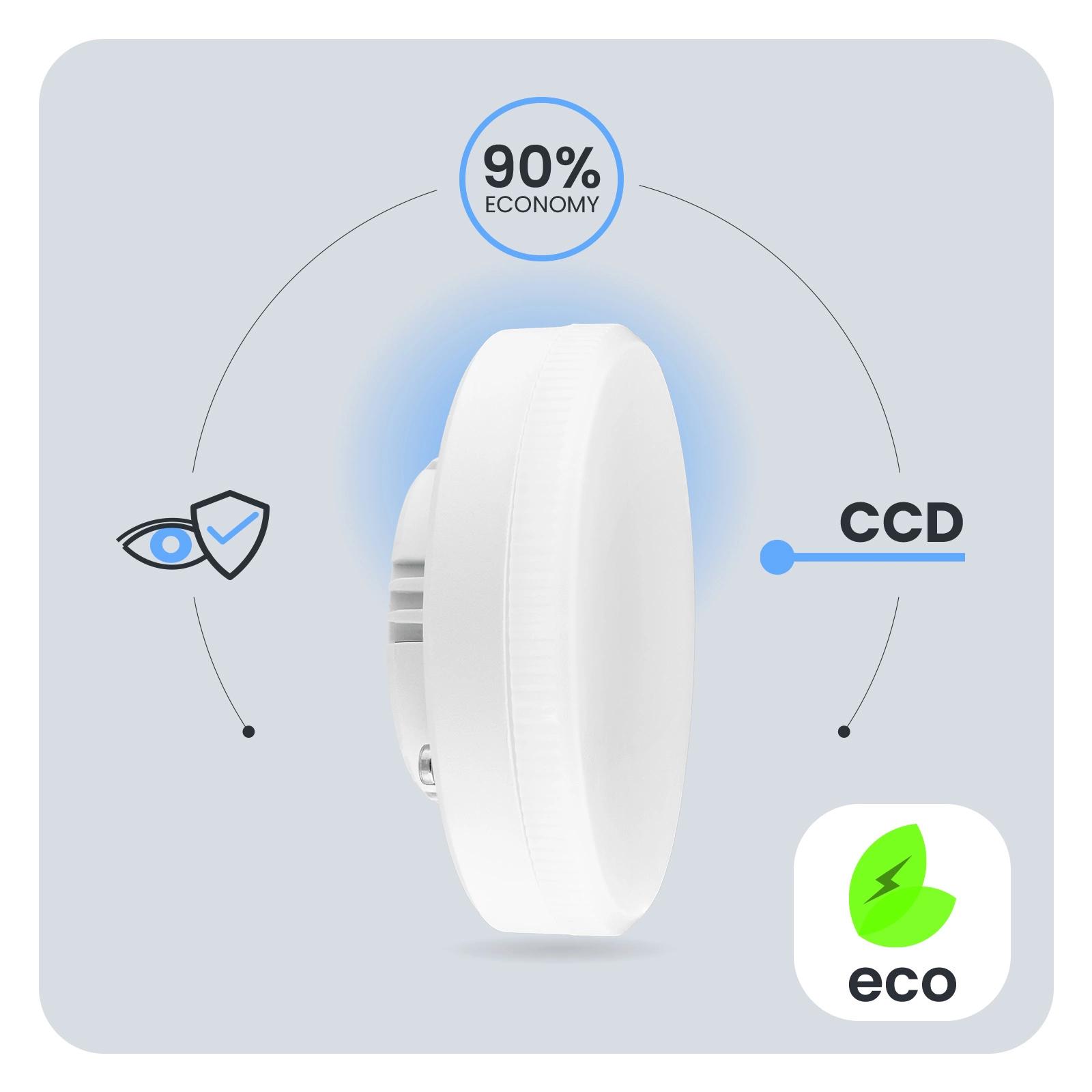 Úsporná LED žárovka GX53 12W je osvědčenou a nejlepší volbou pro univerzální aplikace. Je vhodný pro instalaci do všech standardních modelů stropních svítidel se šroubovací paticí GX53.