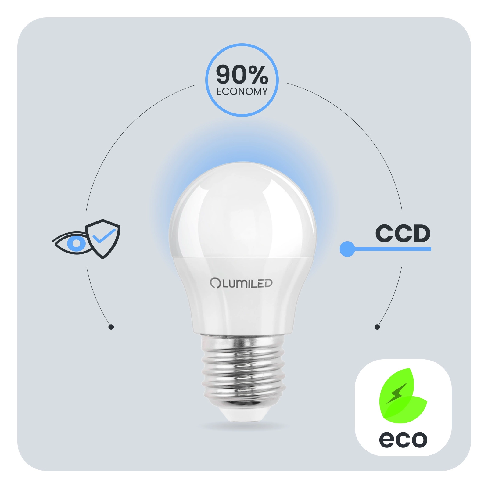 Žárovky LUMILED byly navrženy s ohledem na uživatele. Špatná kvalita osvětlení může vést k únavě očí, a proto naše žárovky s technickým vývojem Eye Safe poskytnou pohodlné a přátelské osvětlení pro vaše oči v každé místnosti.