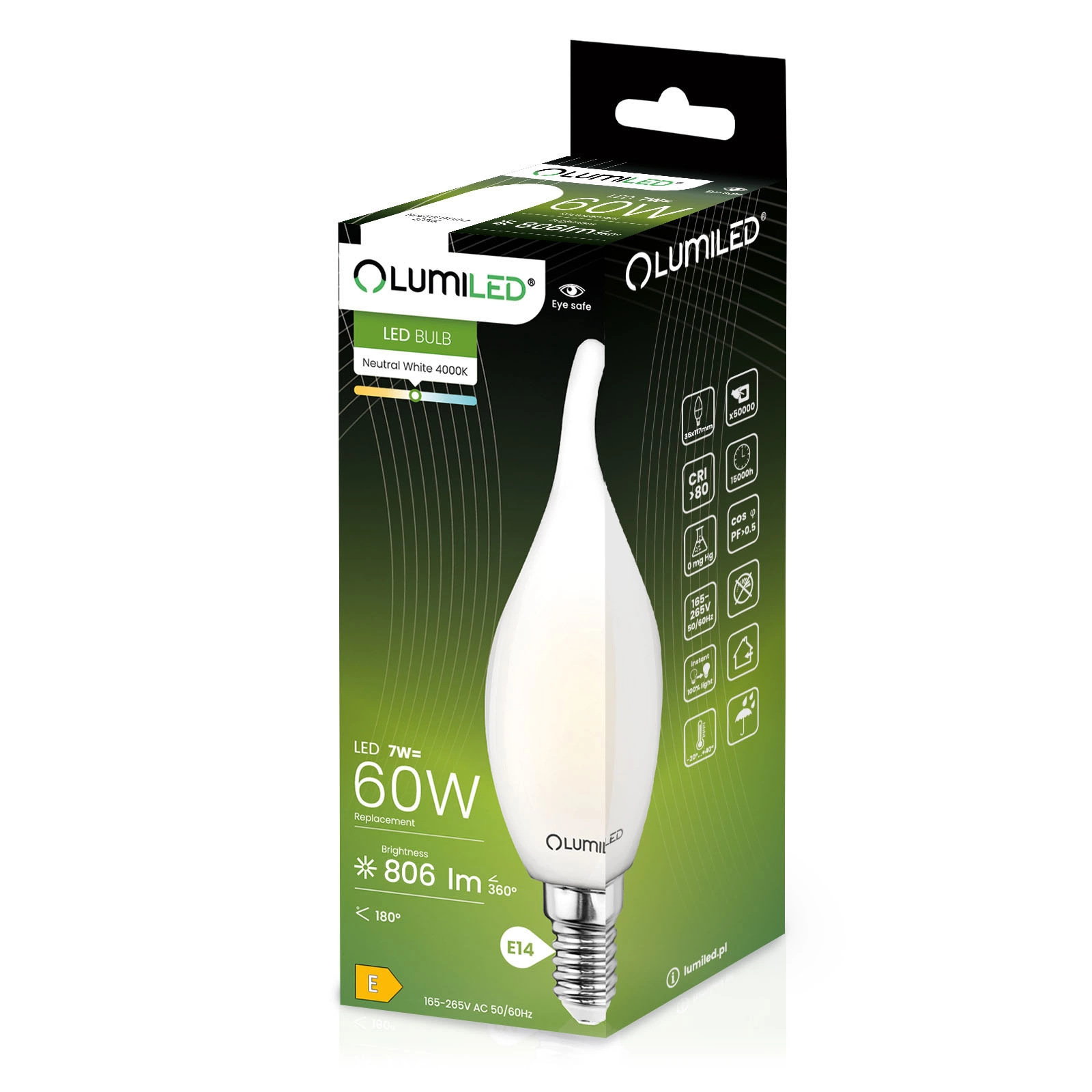 LED žárovka renomované a uznávané značky LUMILED v oboru osvětlení s paticí E14 a výkonem 7W. Žárovka je ideální pro každou domácnost, obchod, hotel nebo restauraci jako akcentační nebo dekorativní osvětlení a lze ji instalovat do všech tradičních svítidel vybavených paticí E14.