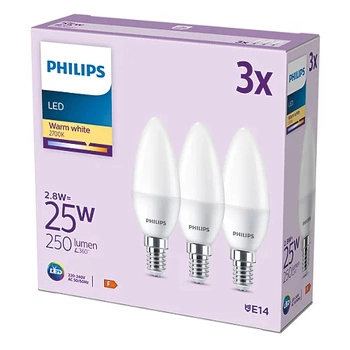 3x LED svíčková žárovka E14 B35 4,9W = 40W 470lm 2700K teplá bílá matná PHILIPS